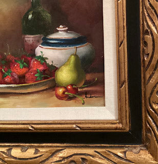 Vintage Signed Andre Still Life Oil On Canvas Framed Fruit Rare