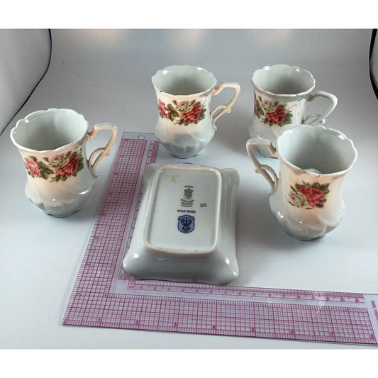Wild Rose porcelain from Germany 4 Porcelain cups and sugar dish
