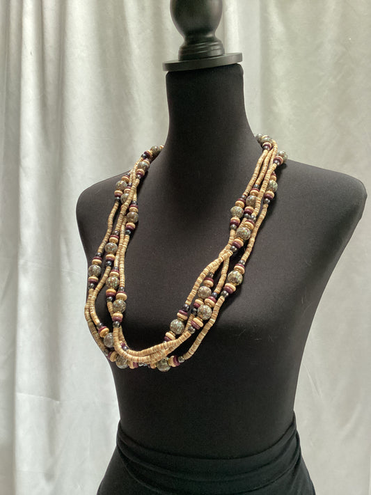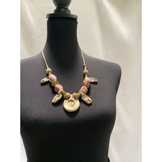 AFRICAN BEAD AND SHELL NECKLACE ABOLONE