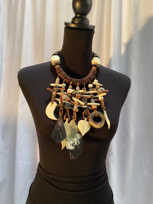 AFRICAN BEAD AND SHELL NECKLACE ABOLONE