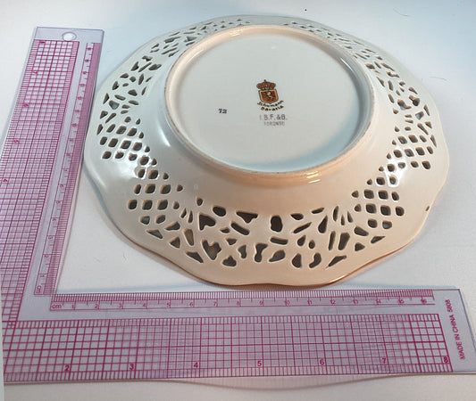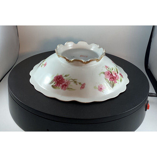 BOWL Fluted Pedestal Gold Trimmed small flower accents - Vintage Rare Porcelain Oyster Candy bowl dish