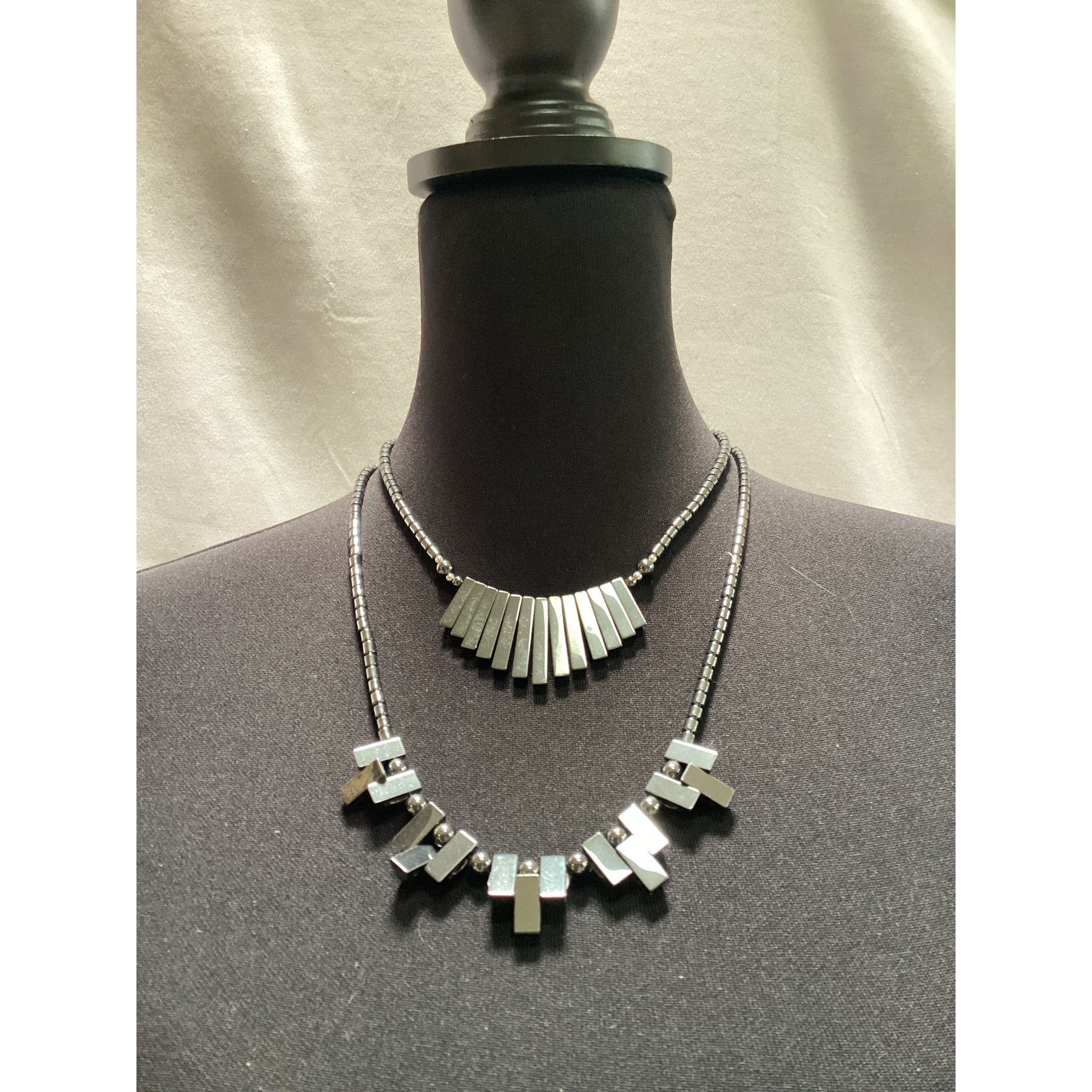Indulge in the exquisite allure of Art Deco elegance with our finely crafted Hematite Necklace Duo. This unique pair of necklaces is more than just jewelry; it's a statement of sophistication, originality, and grounded energy.