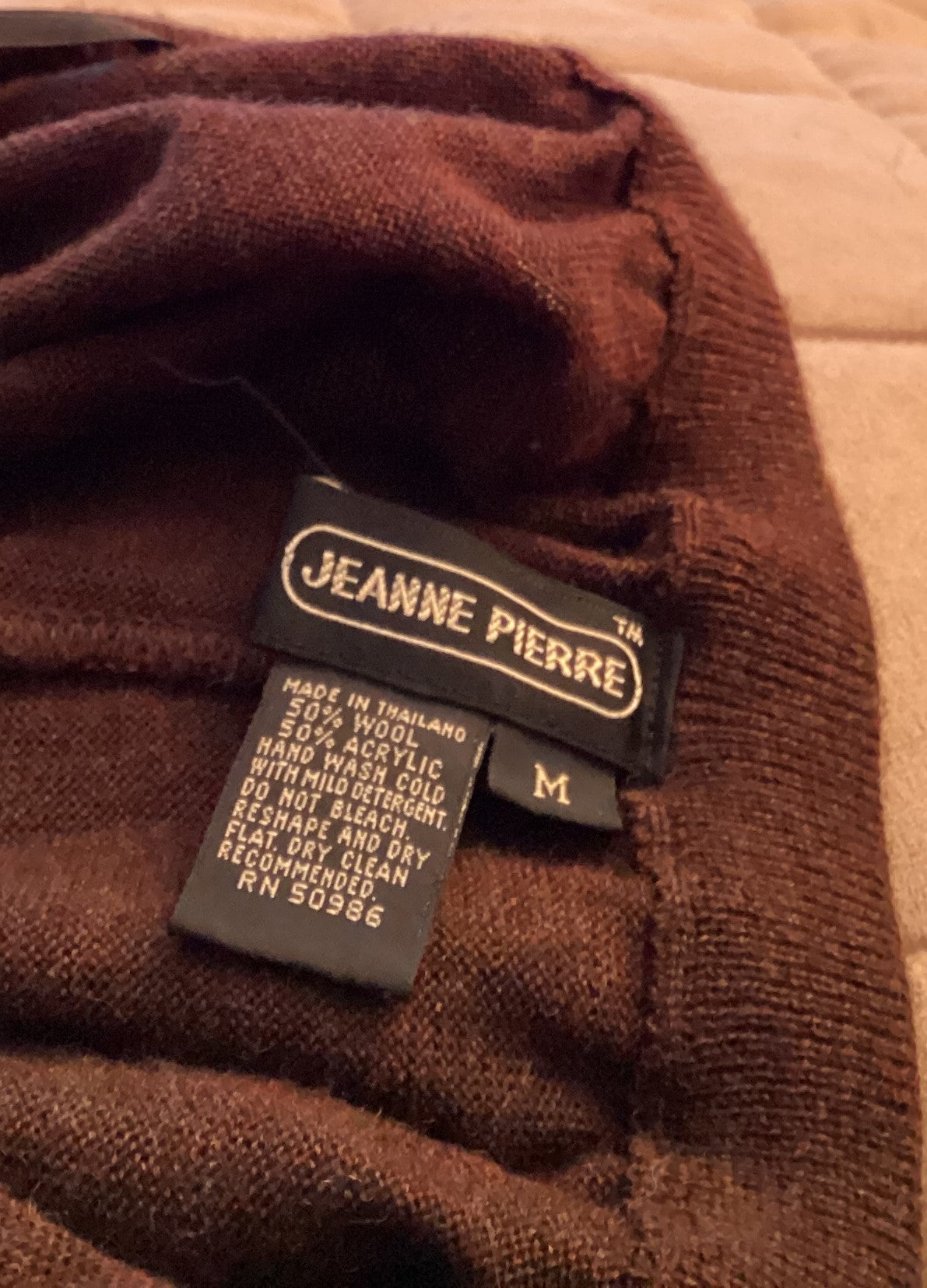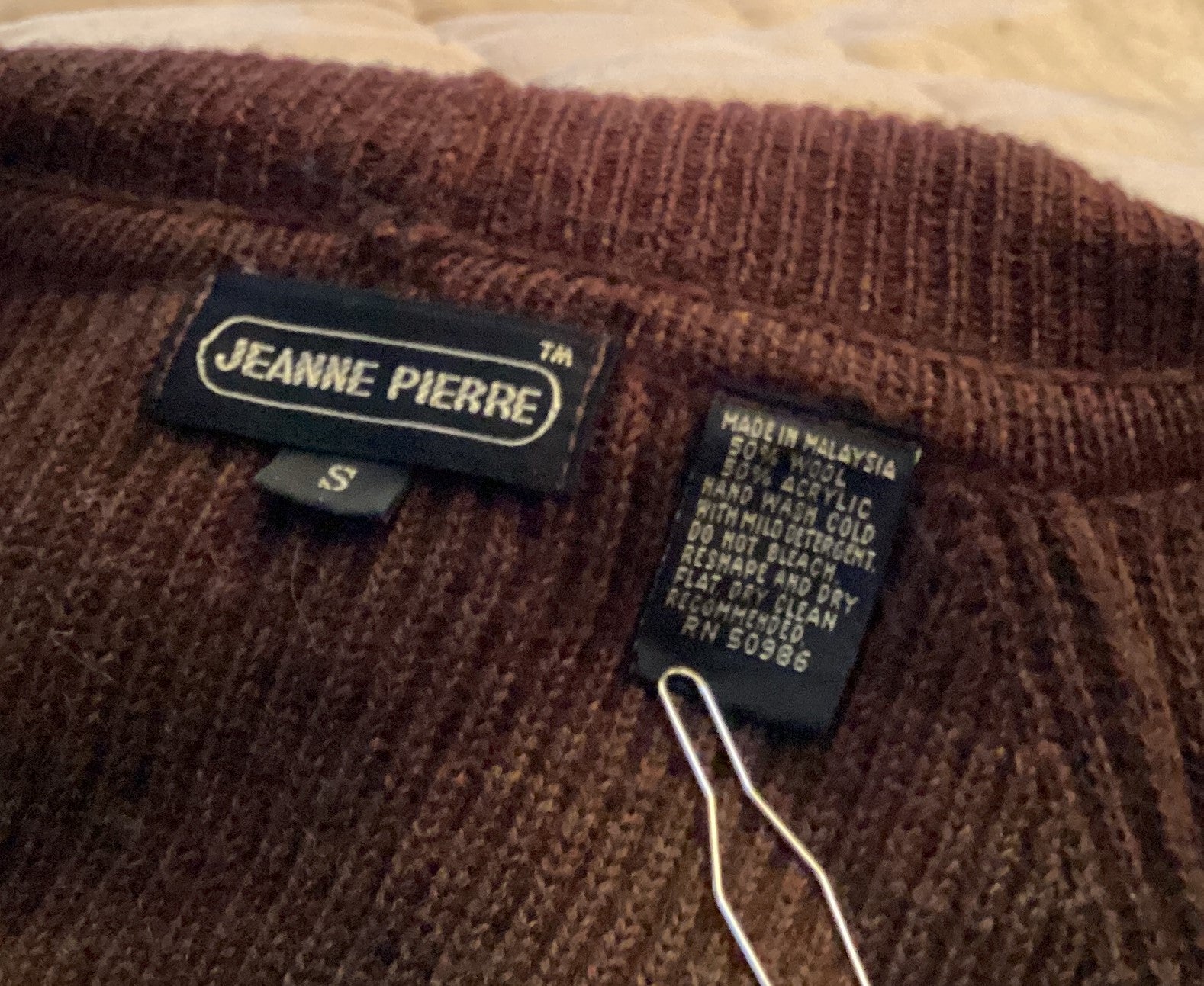 Introducing the Exquisite Jeanne Pierre Wool and Acrylic Pants Suit in Brown, Size Small – a timeless ensemble that exudes elegance and unmatched quality.