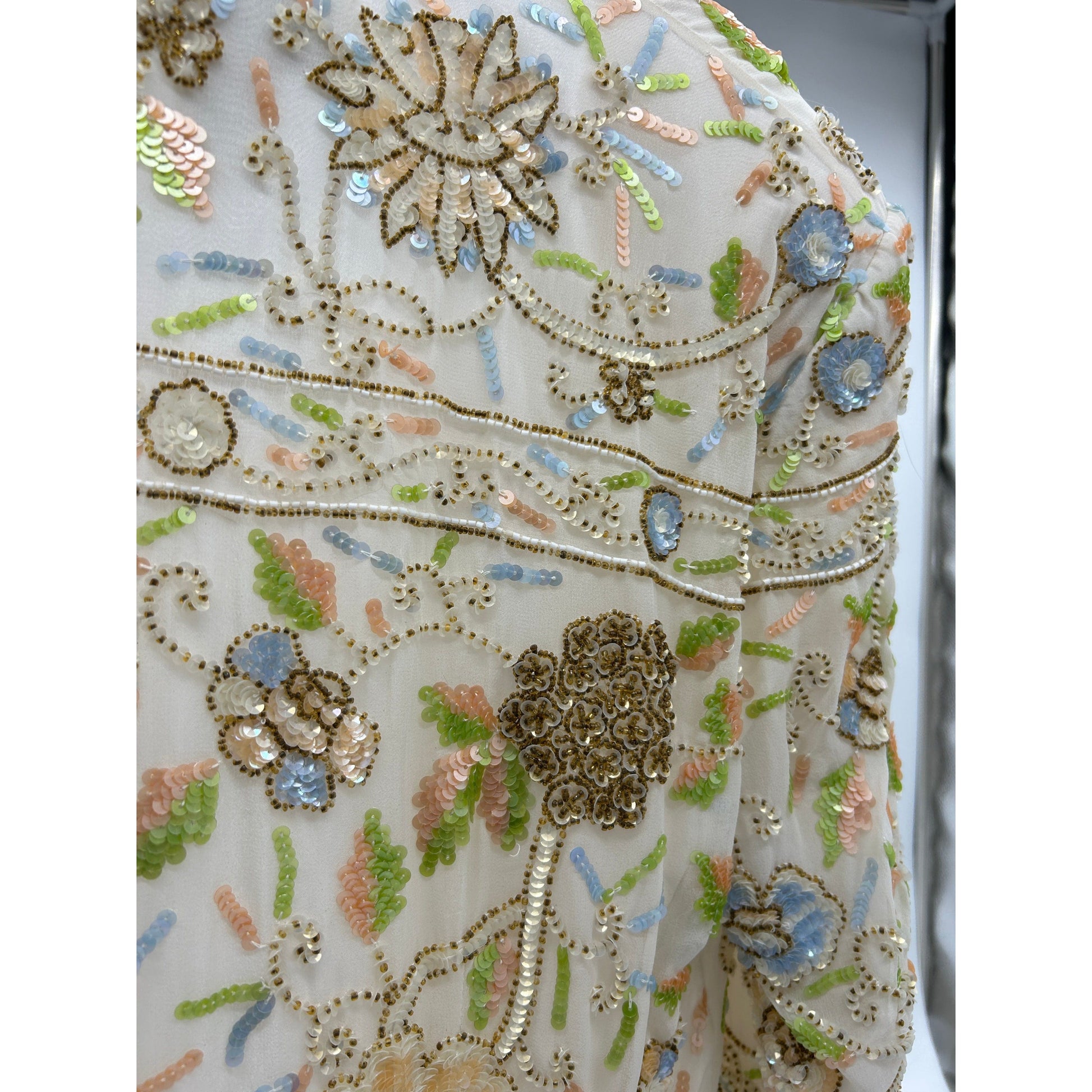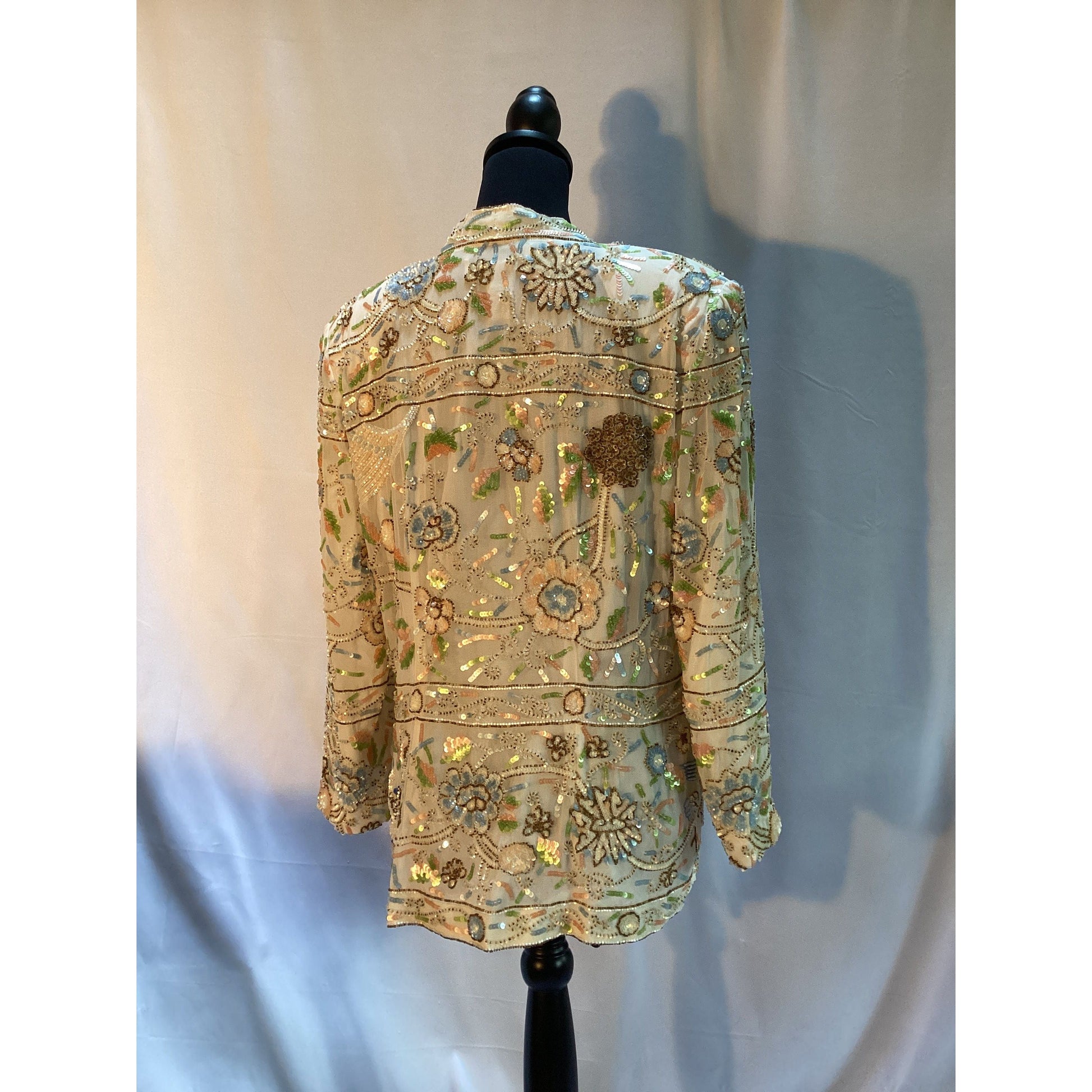 Your Next Fashion Must-Have: Don't miss the chance to own this stunning Niteline Della Roufogali 100% Silk Beaded Jacket. Enhance your wardrobe with elegance, sophistication, and timeless style. Perfect for gala events, formal occasions, or to elevate your everyday looks.