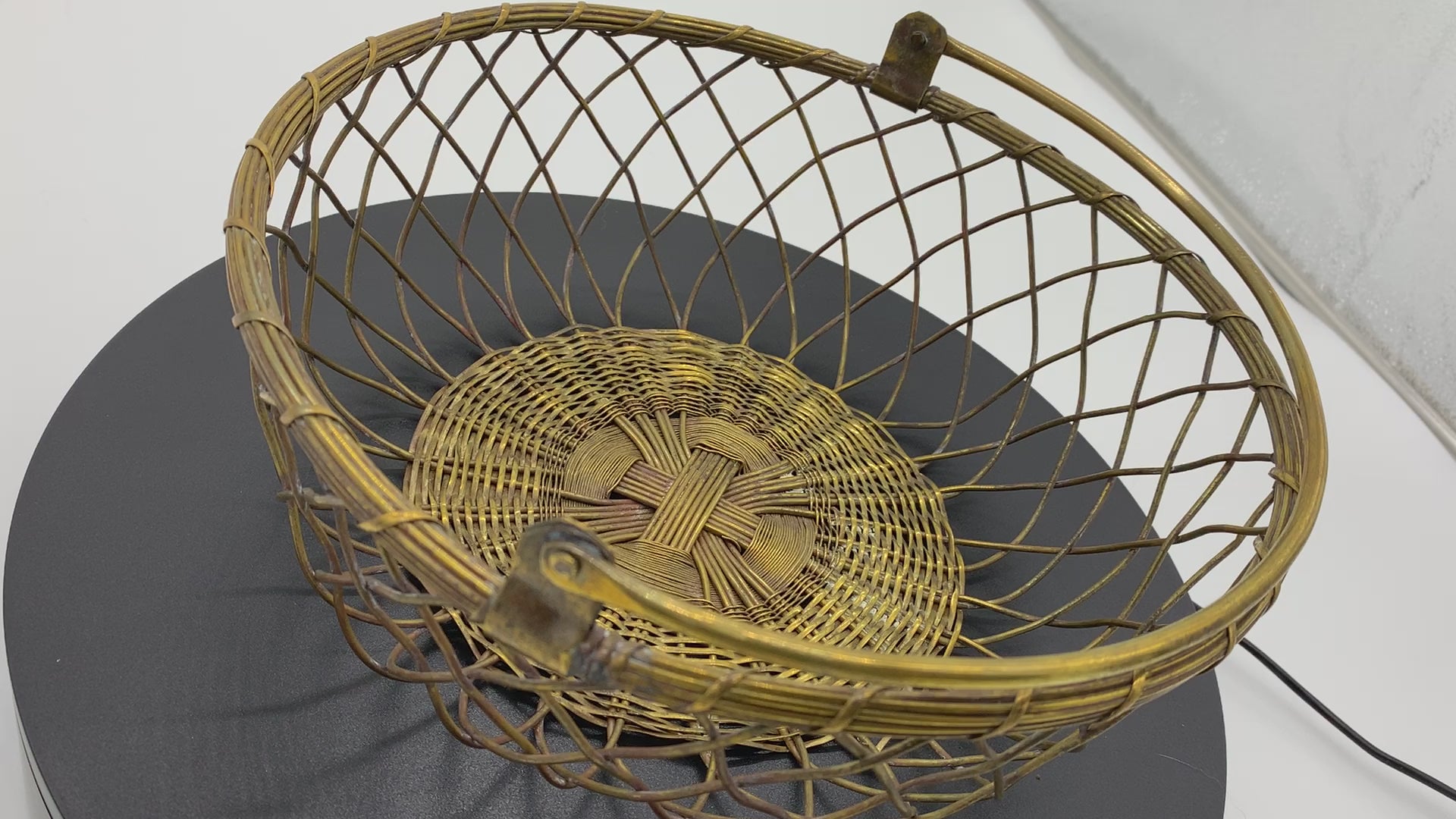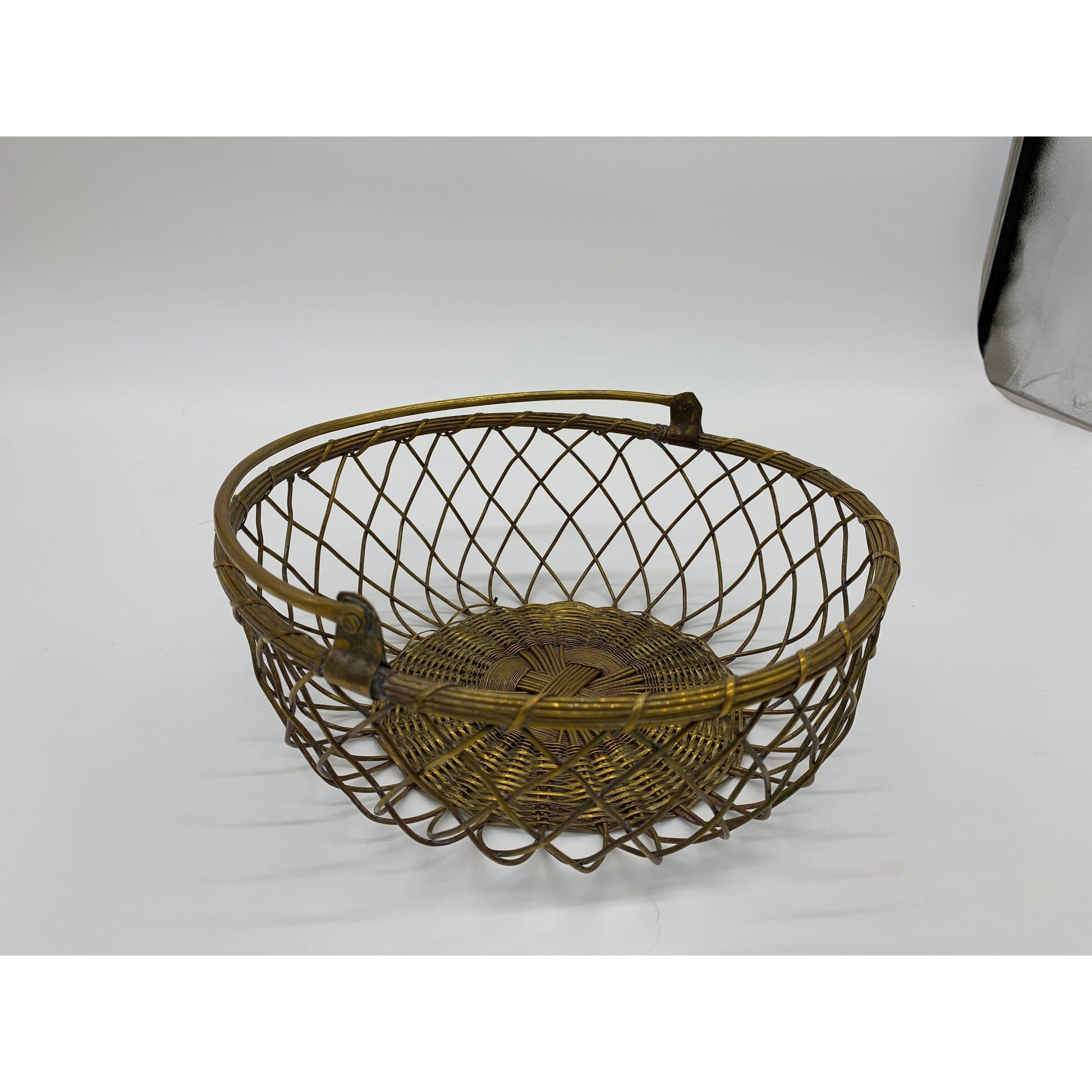 Introducing the Exquisite Vintage Round Brass Basket with Handle – A Timeless Elegance for Your Home!