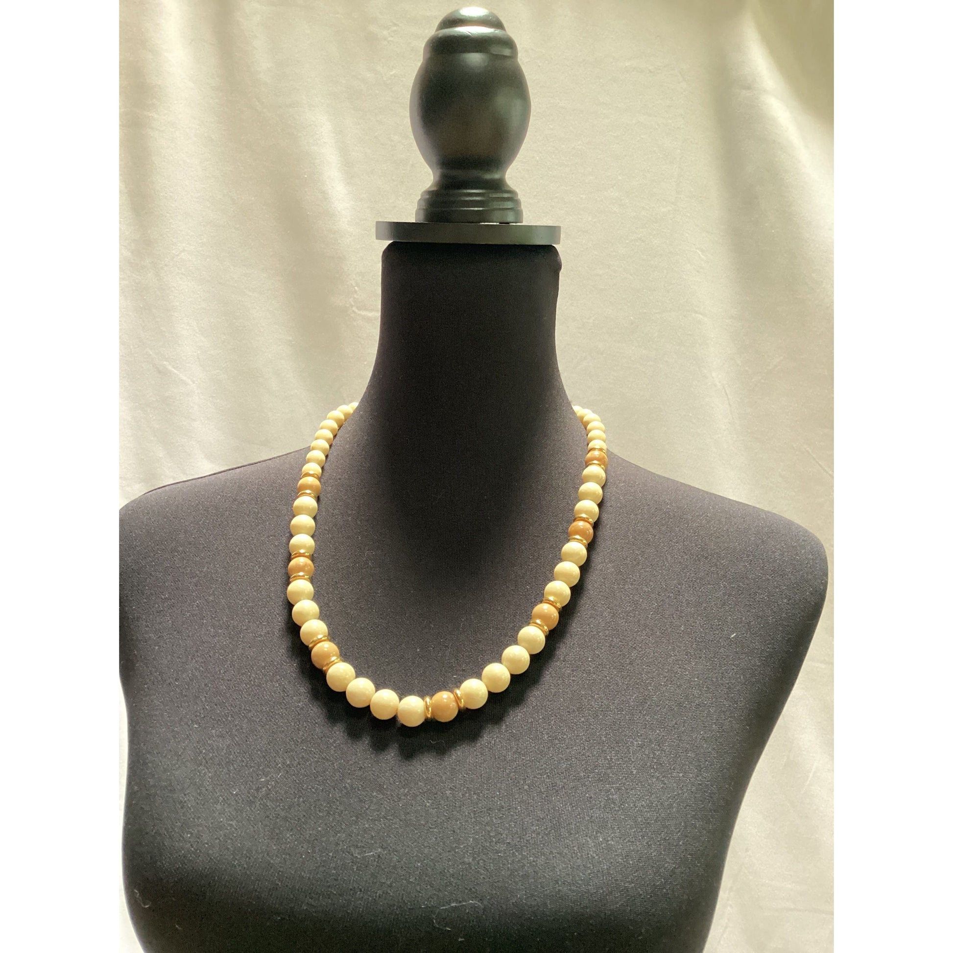 NECKLACE by Napier Vintage Cream Beige Color Beaded Gold Tone Spacers Signed 24 ”