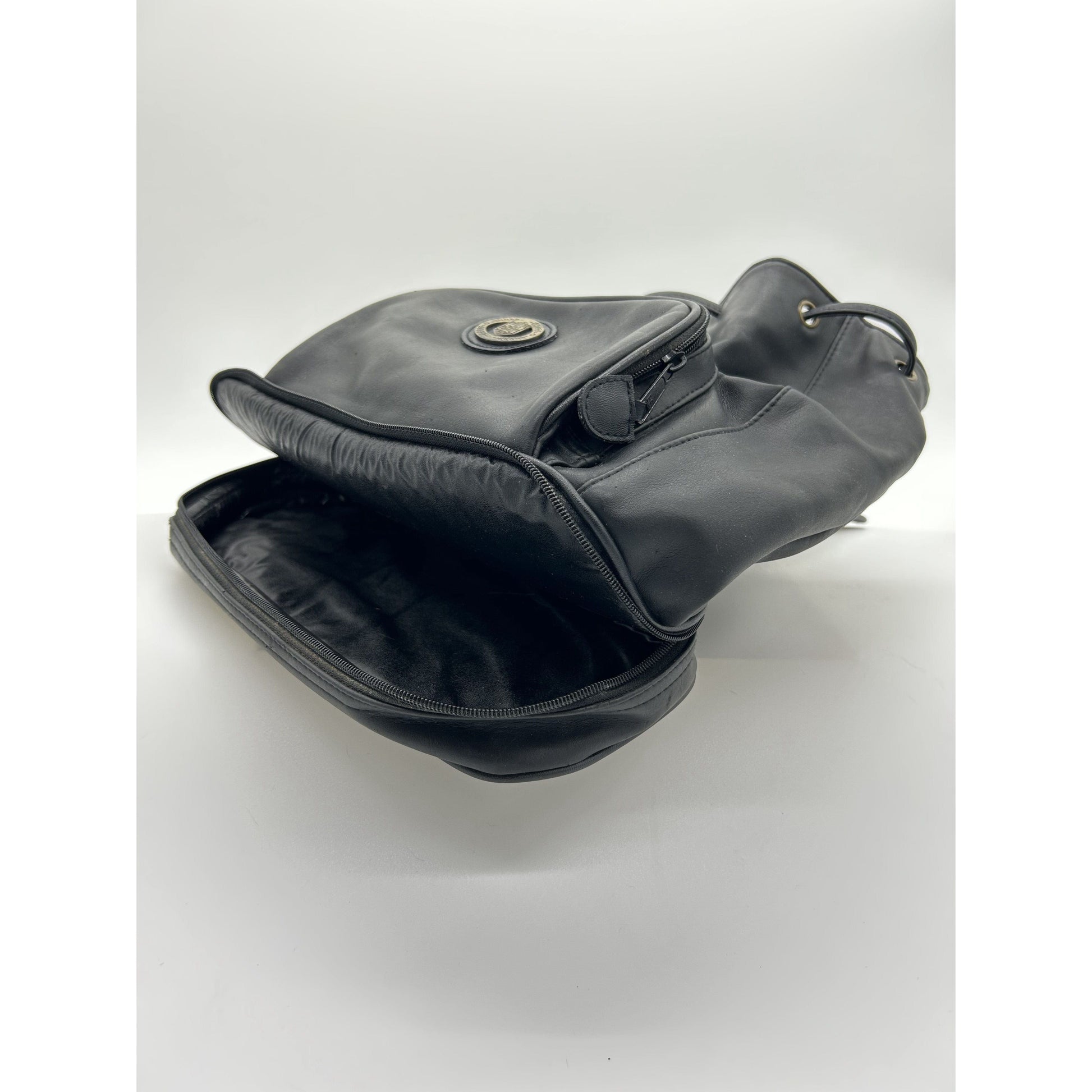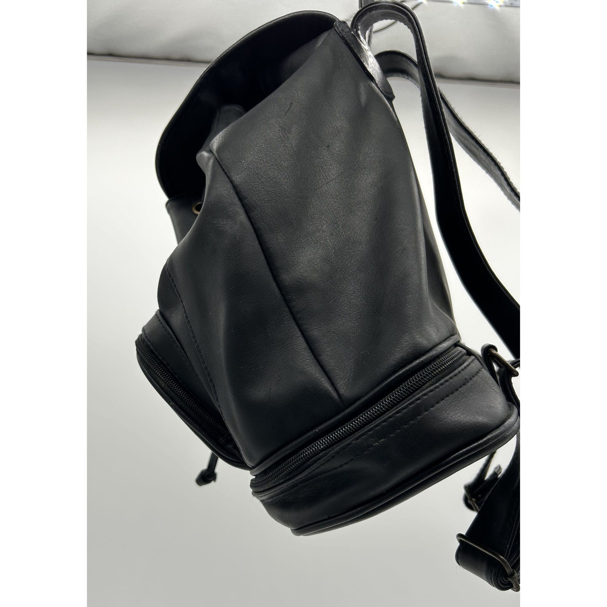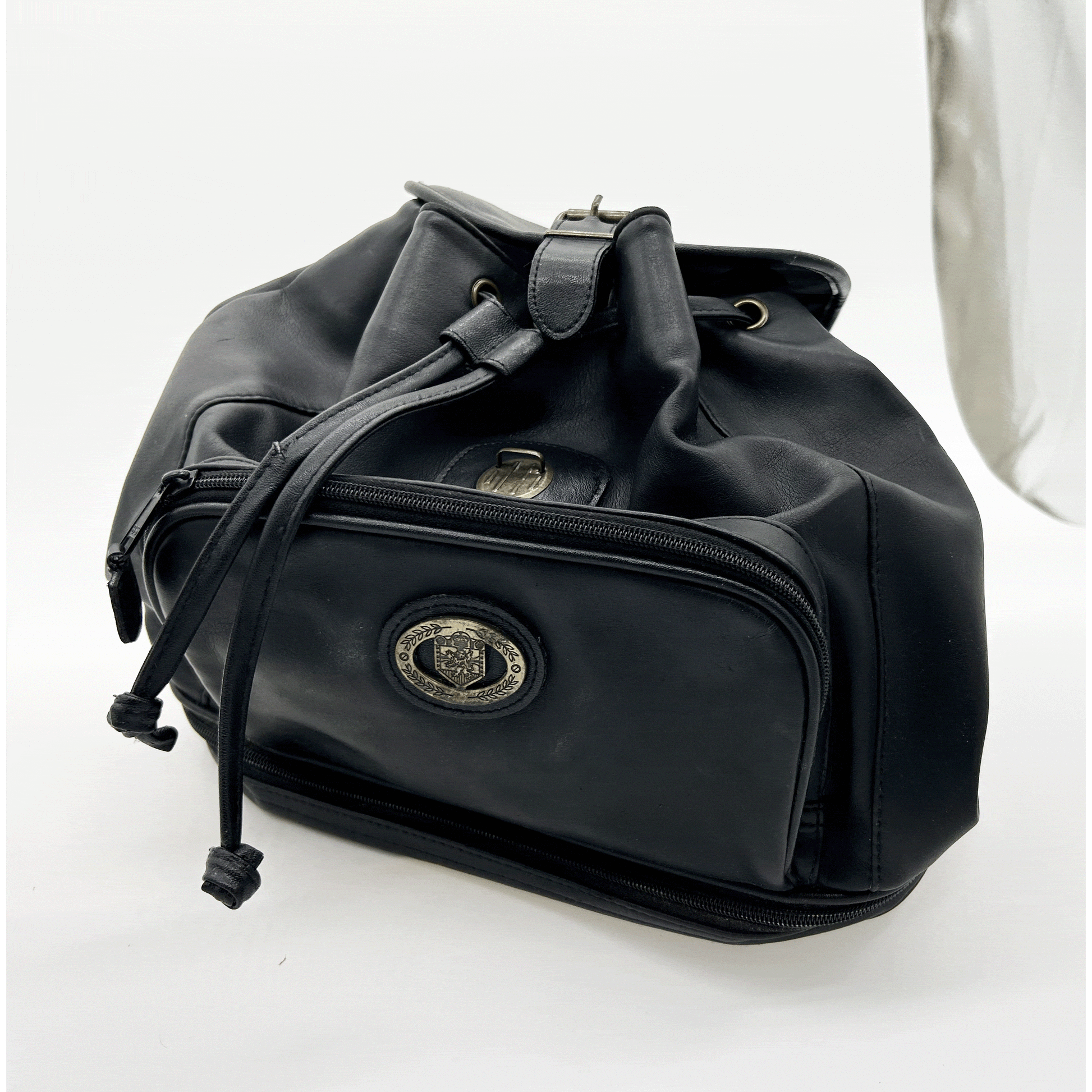 Black leather duffle backpack with pockets