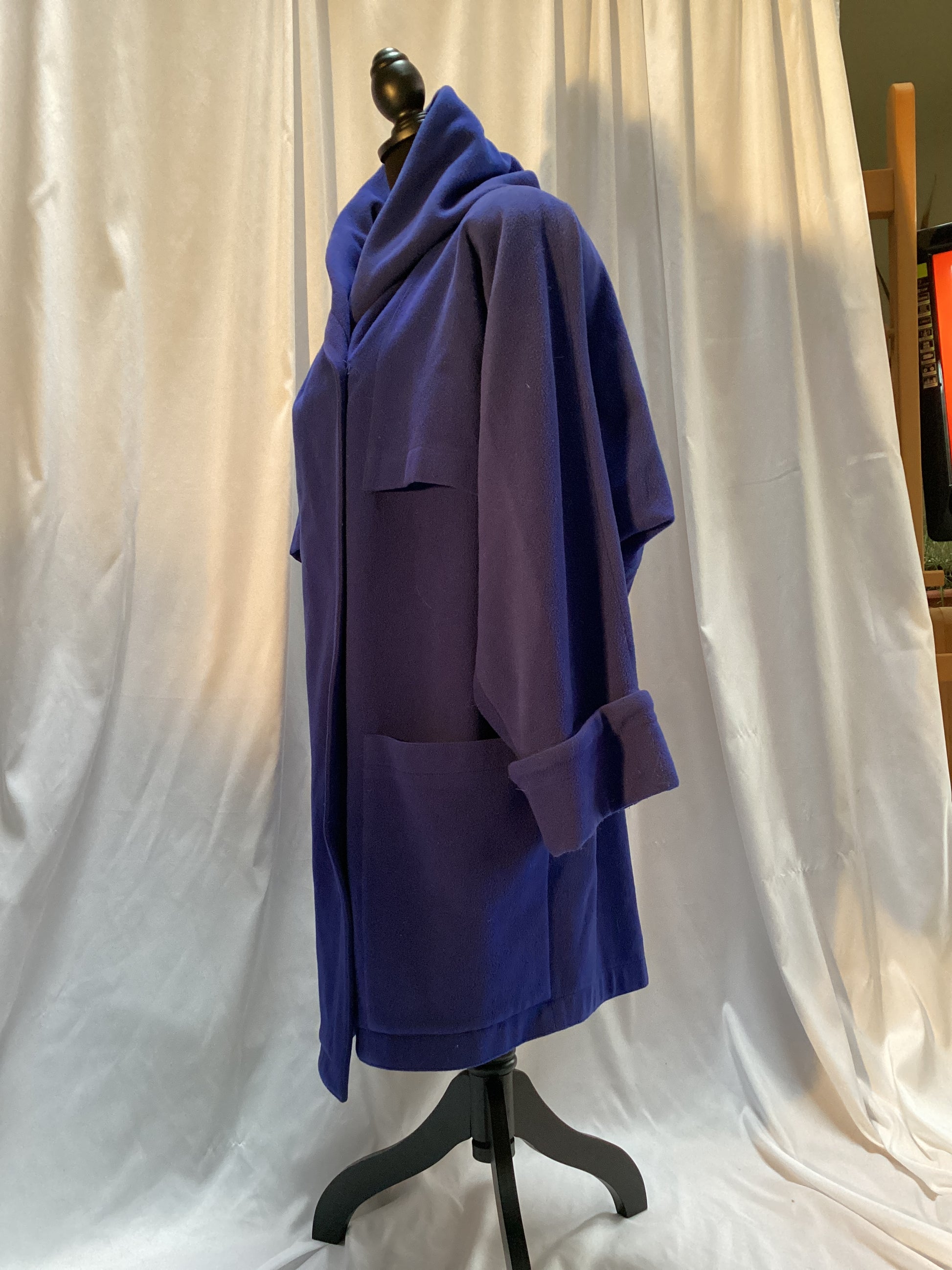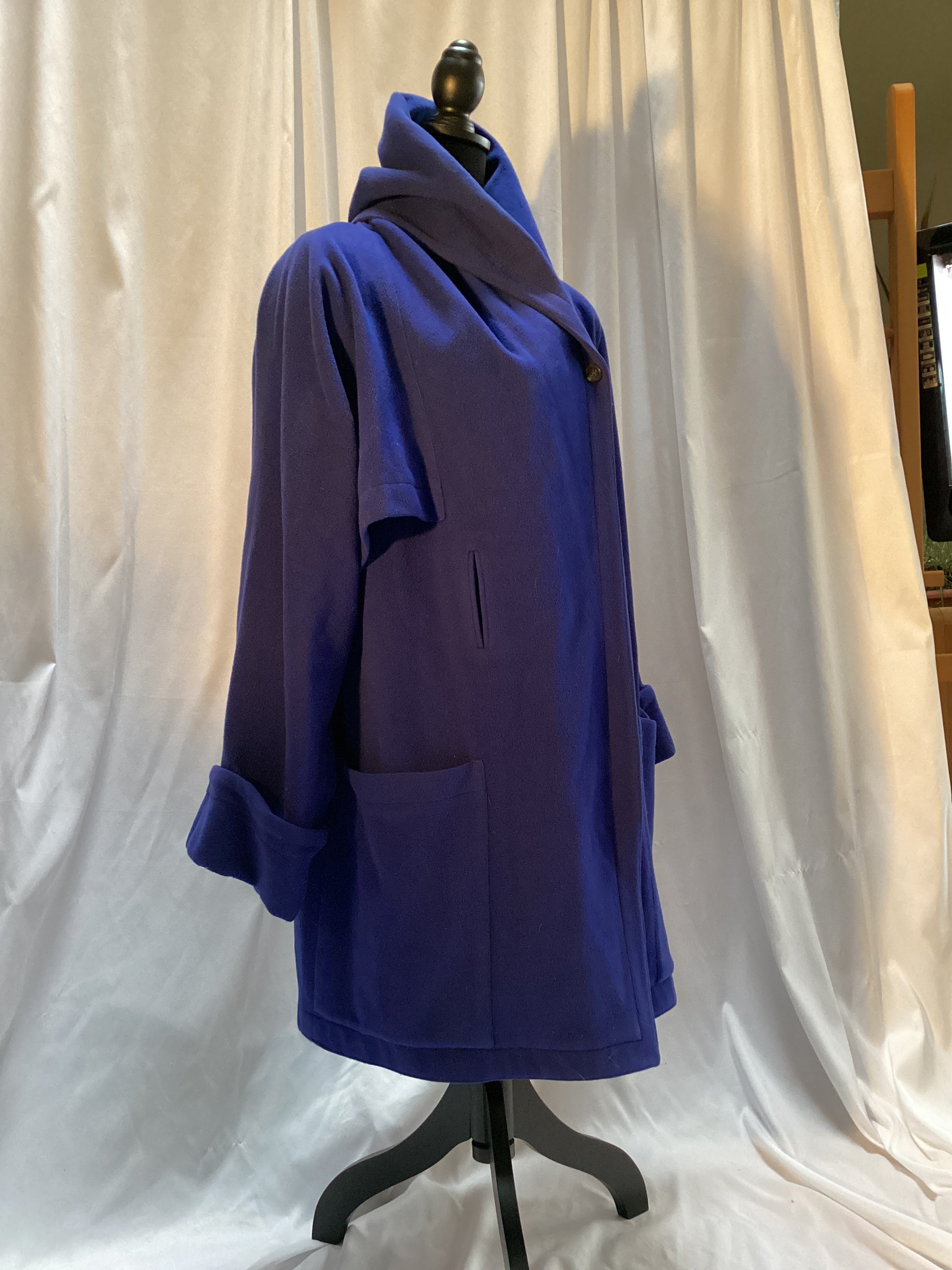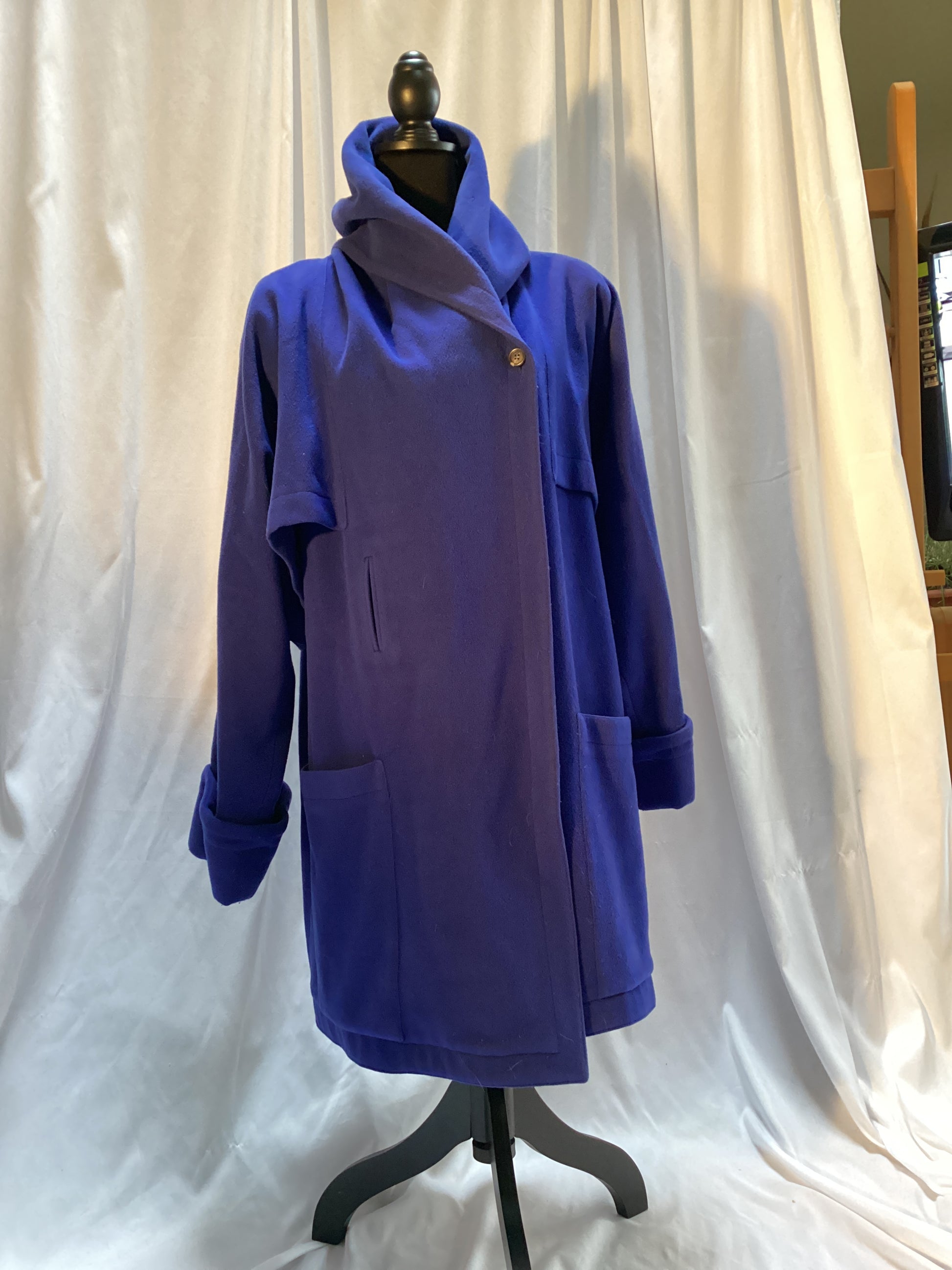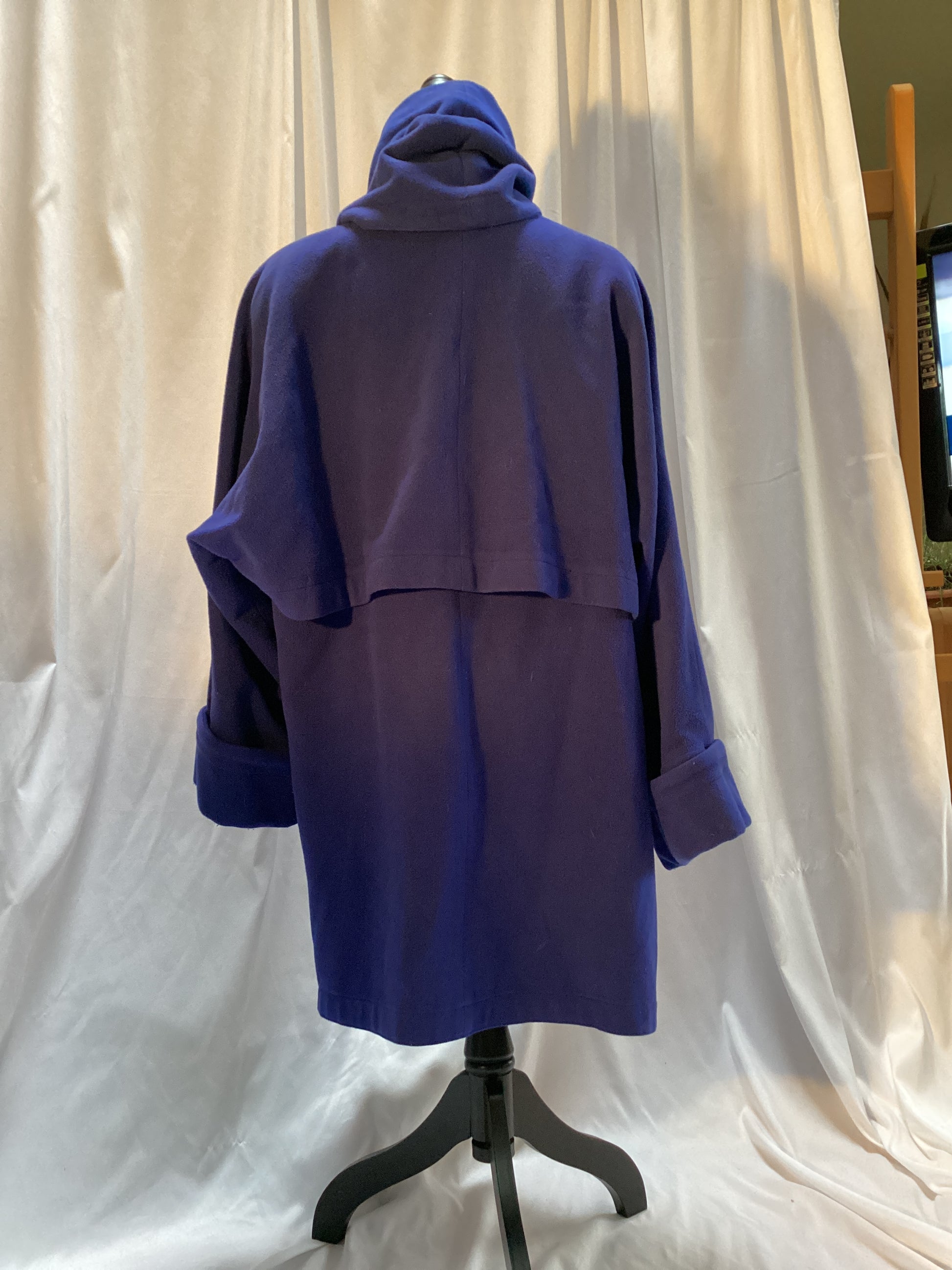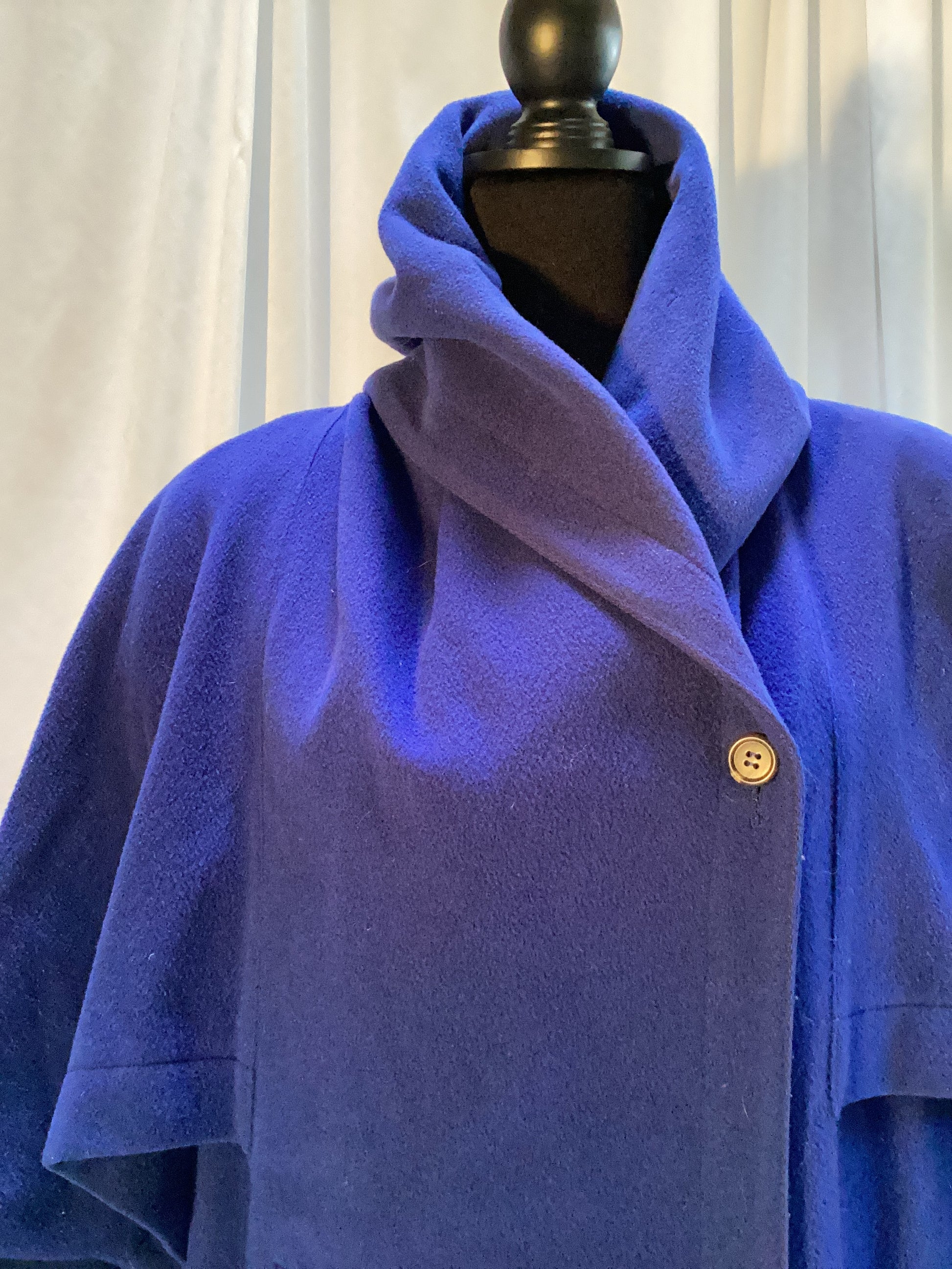 Blue Wool Wrap Coat w/Cape one button