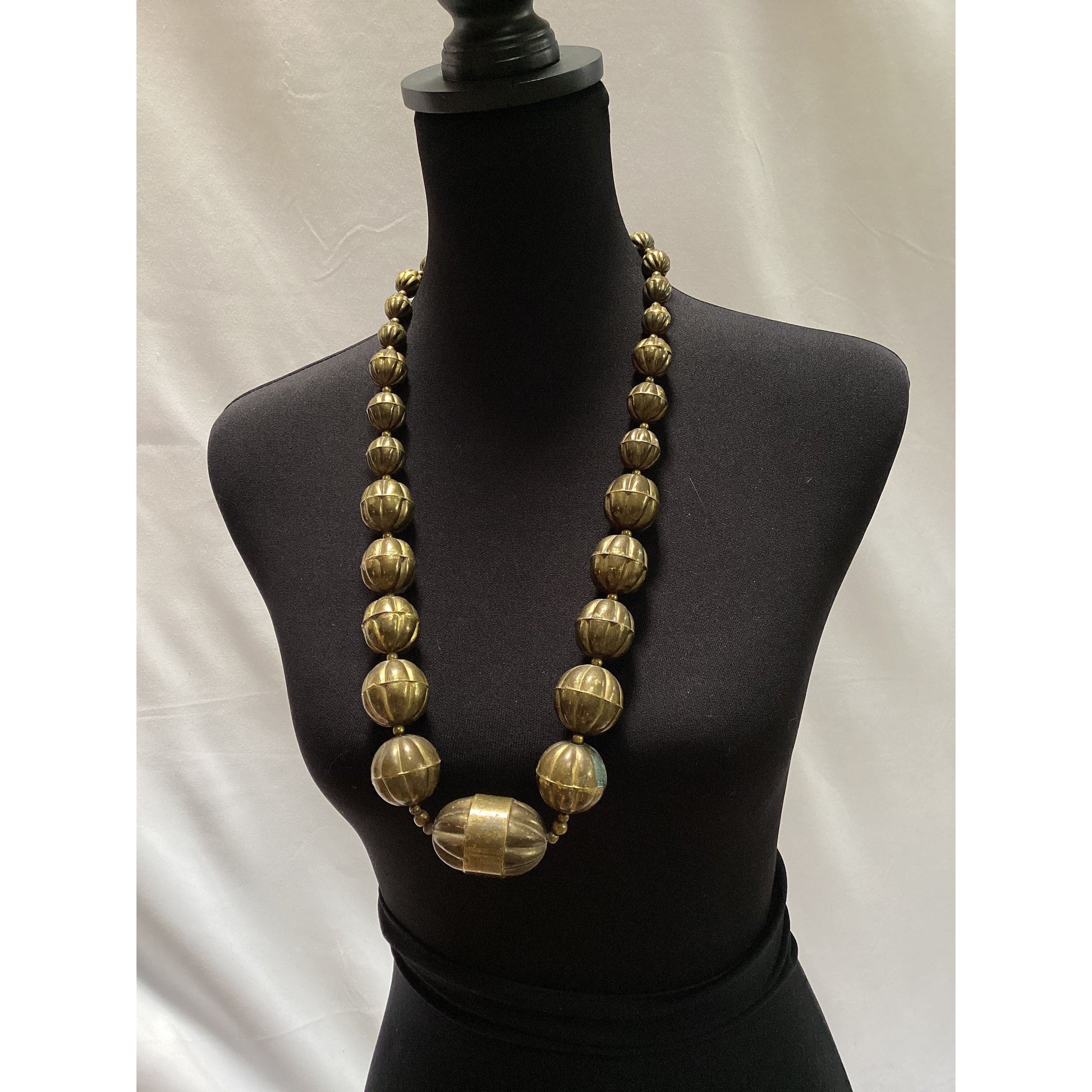 Introducing our Brass Vintage Graduated Hollow Bead Necklace β A Timeless Statement of Vintage Elegance!