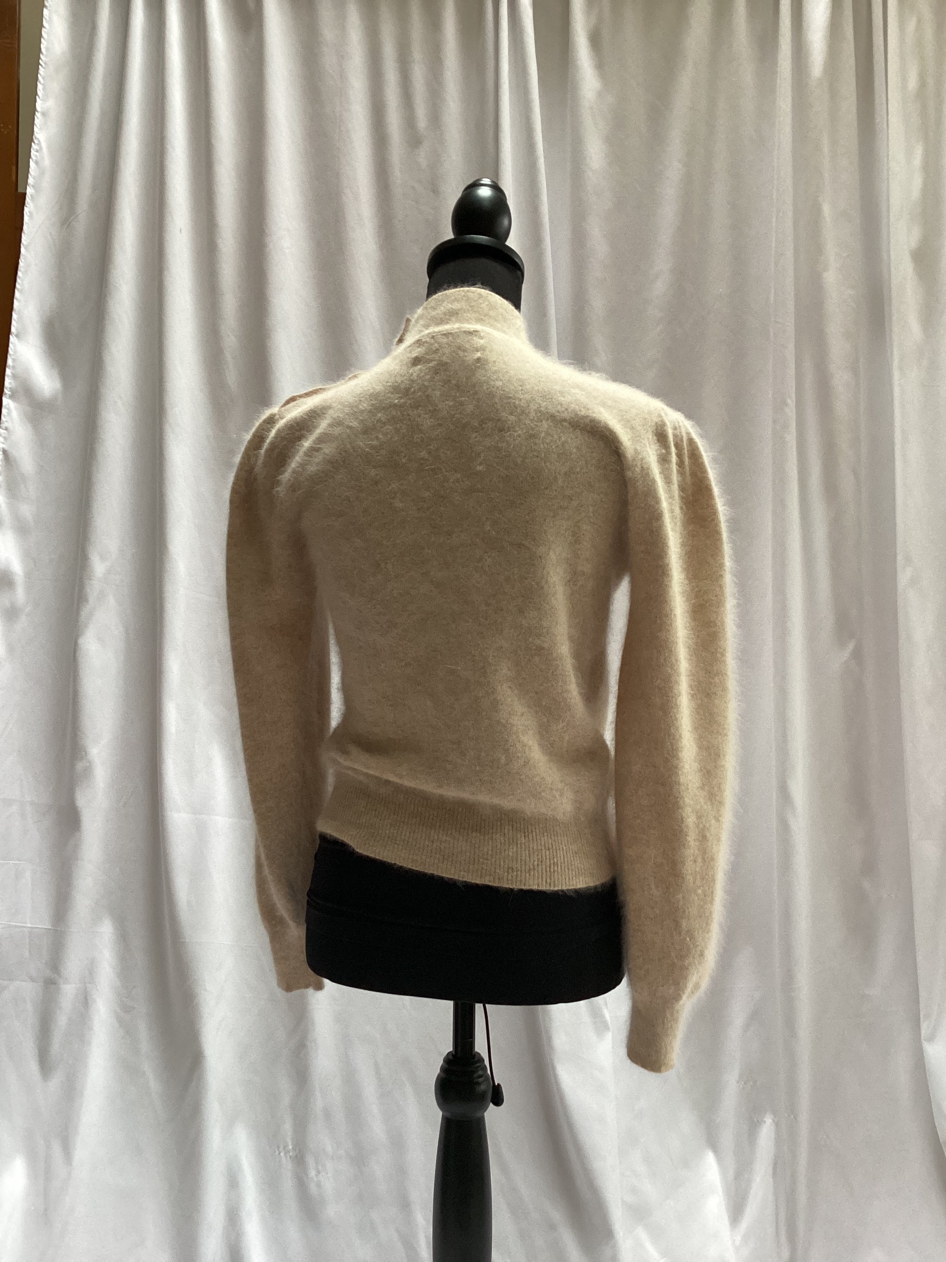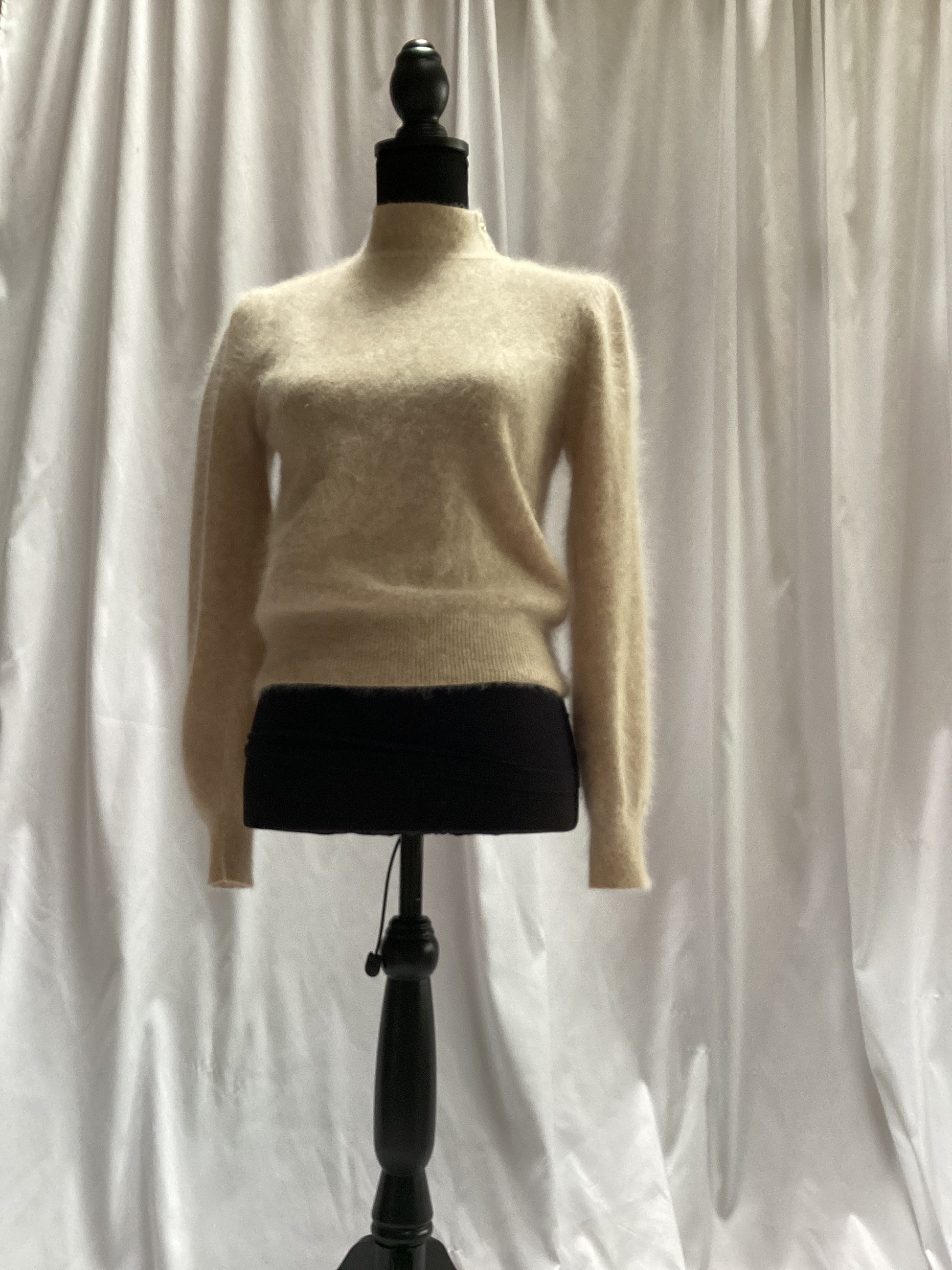 Introducing the Elegant Chaus Lambswool/Angora Long-Sleeved Sweater in Beige, Size large – a luxurious and timeless piece that embodies sophistication and comfort.