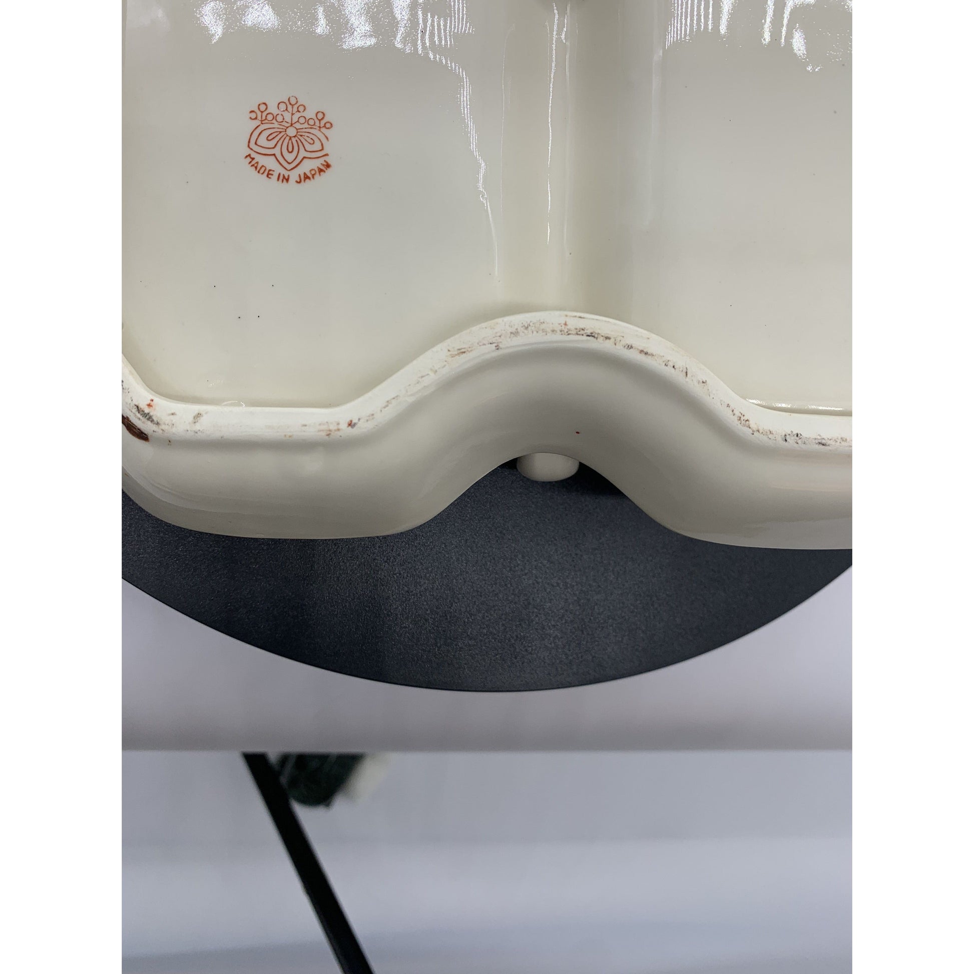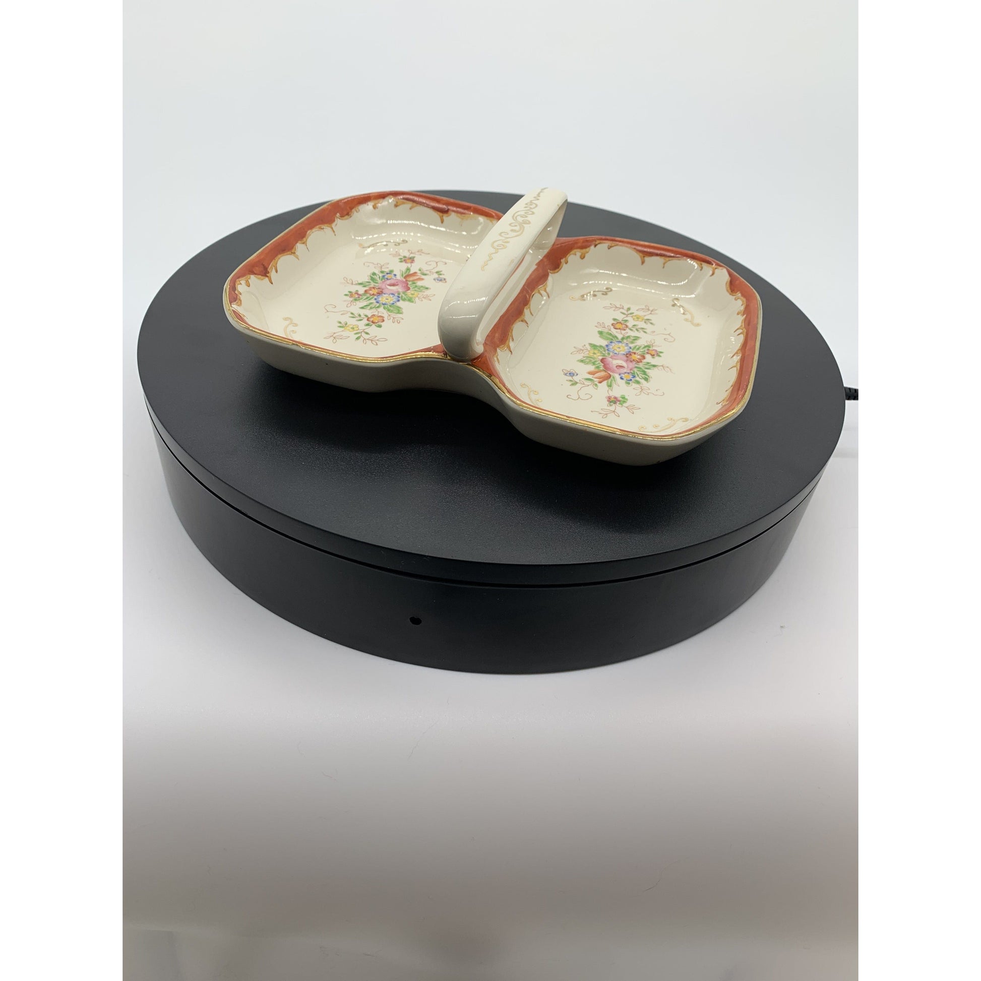 A Charming Porcelain Double Dish with Handle and Red Trim: A Fusion of Beauty and Functionality!