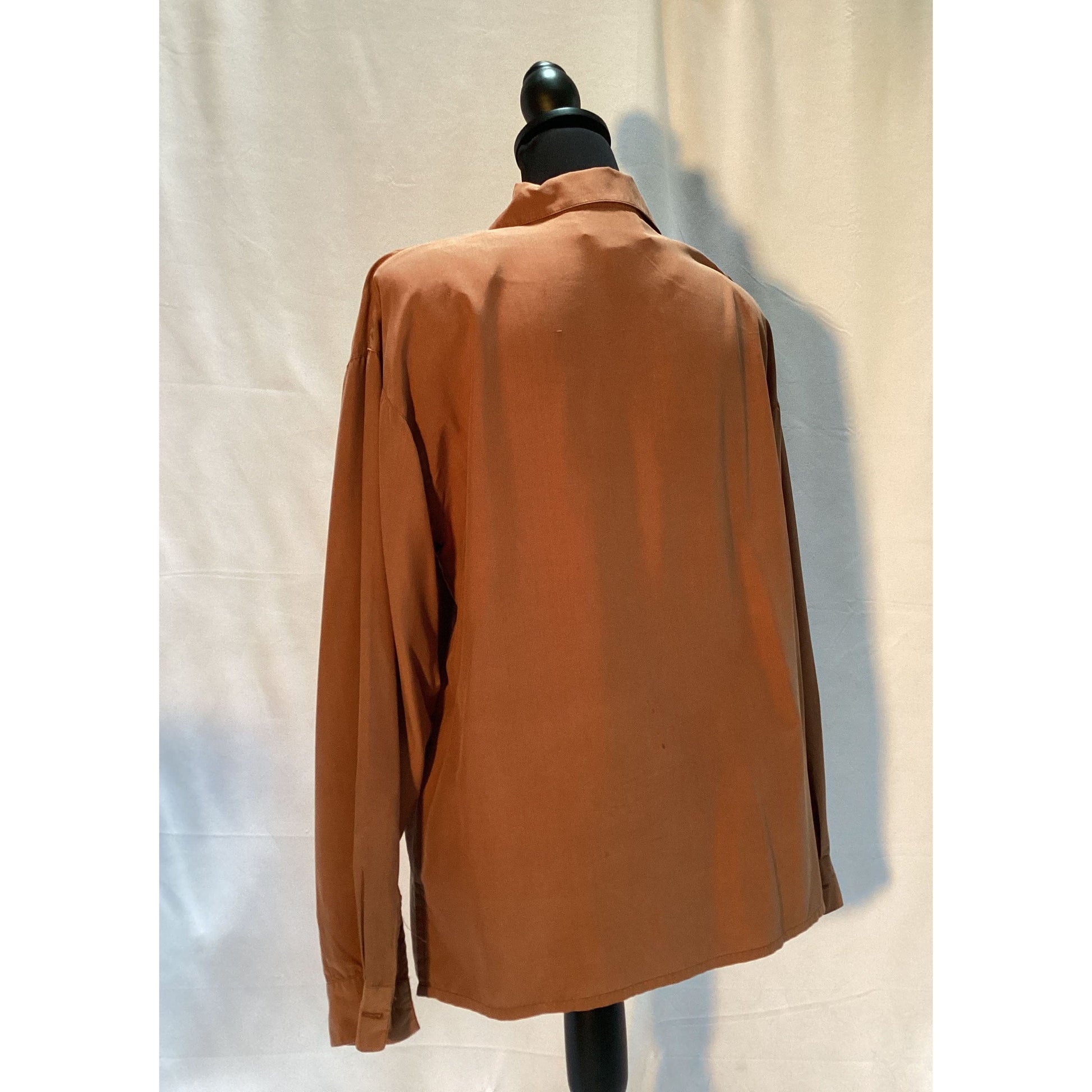 Don't miss your chance to own this beautiful, bronze silk blouse. It's more than just clothing; it's a statement of grace, a nod to the finer things in life, and a celebration of personal style. Make it yours and let your elegance shine.
