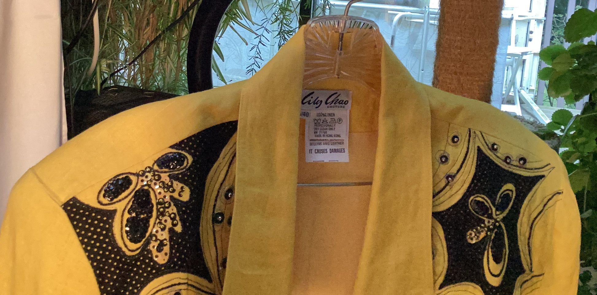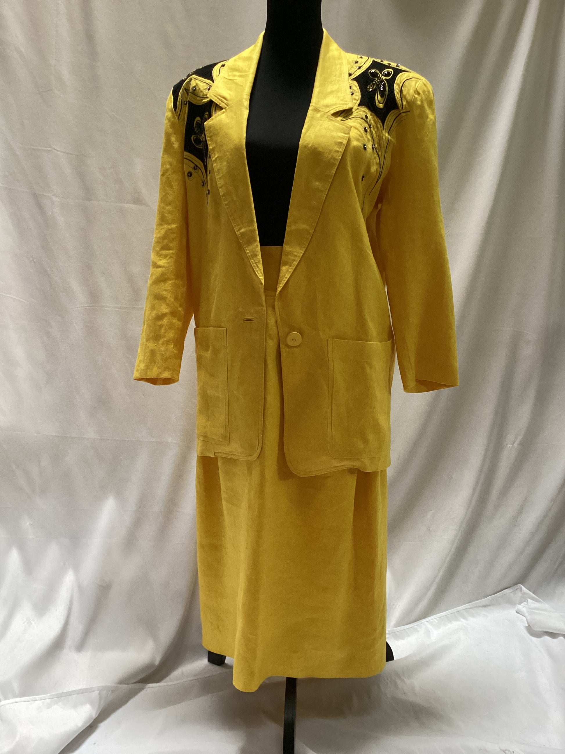 Lily Chao - Yellow Linen 2 Piece Suit size medium, sequin and leather applique