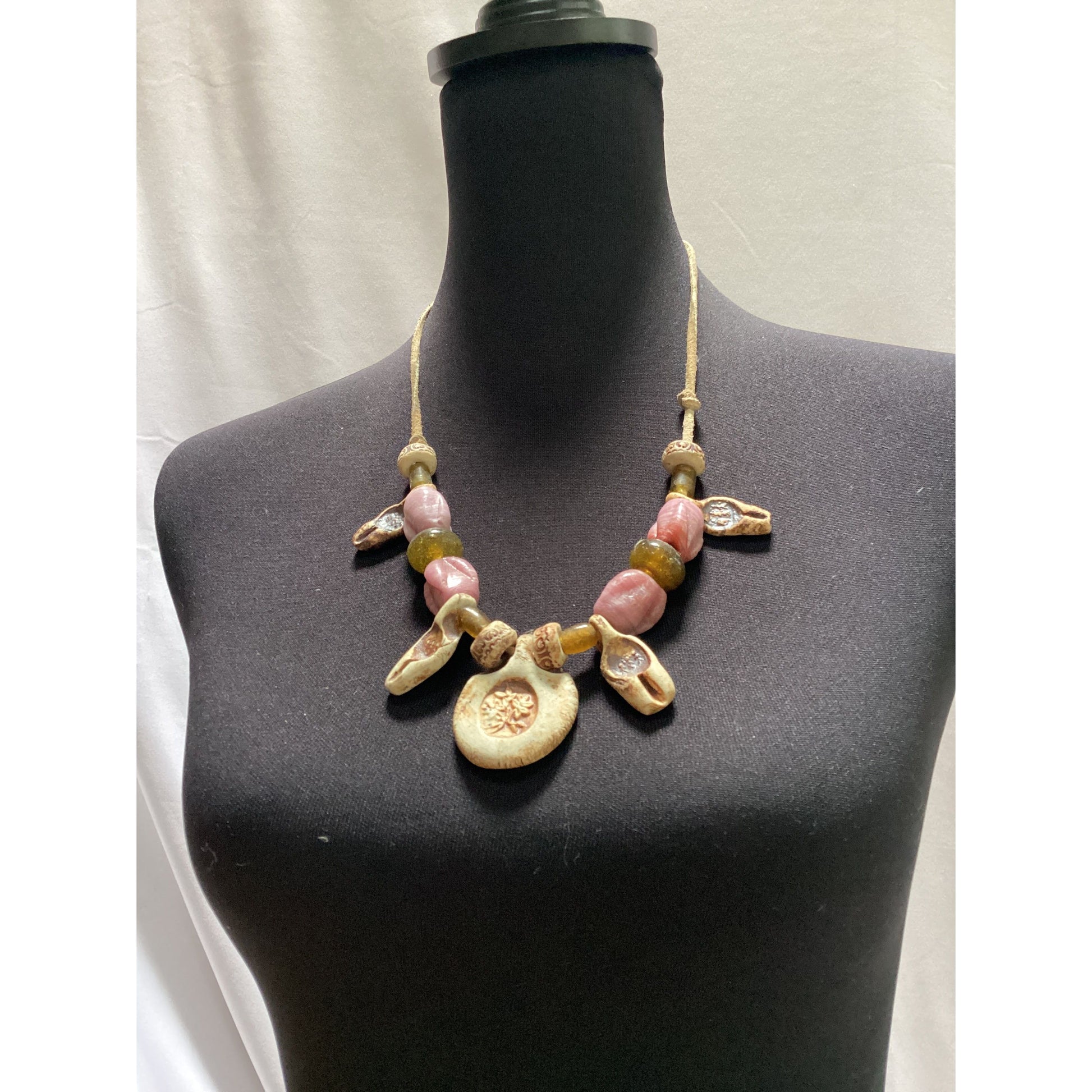Experience the beauty of handmade authenticity ā order your Beige, Light Pink, and Brown Stone & Ceramic Necklace now and embark on your next adventure in style!