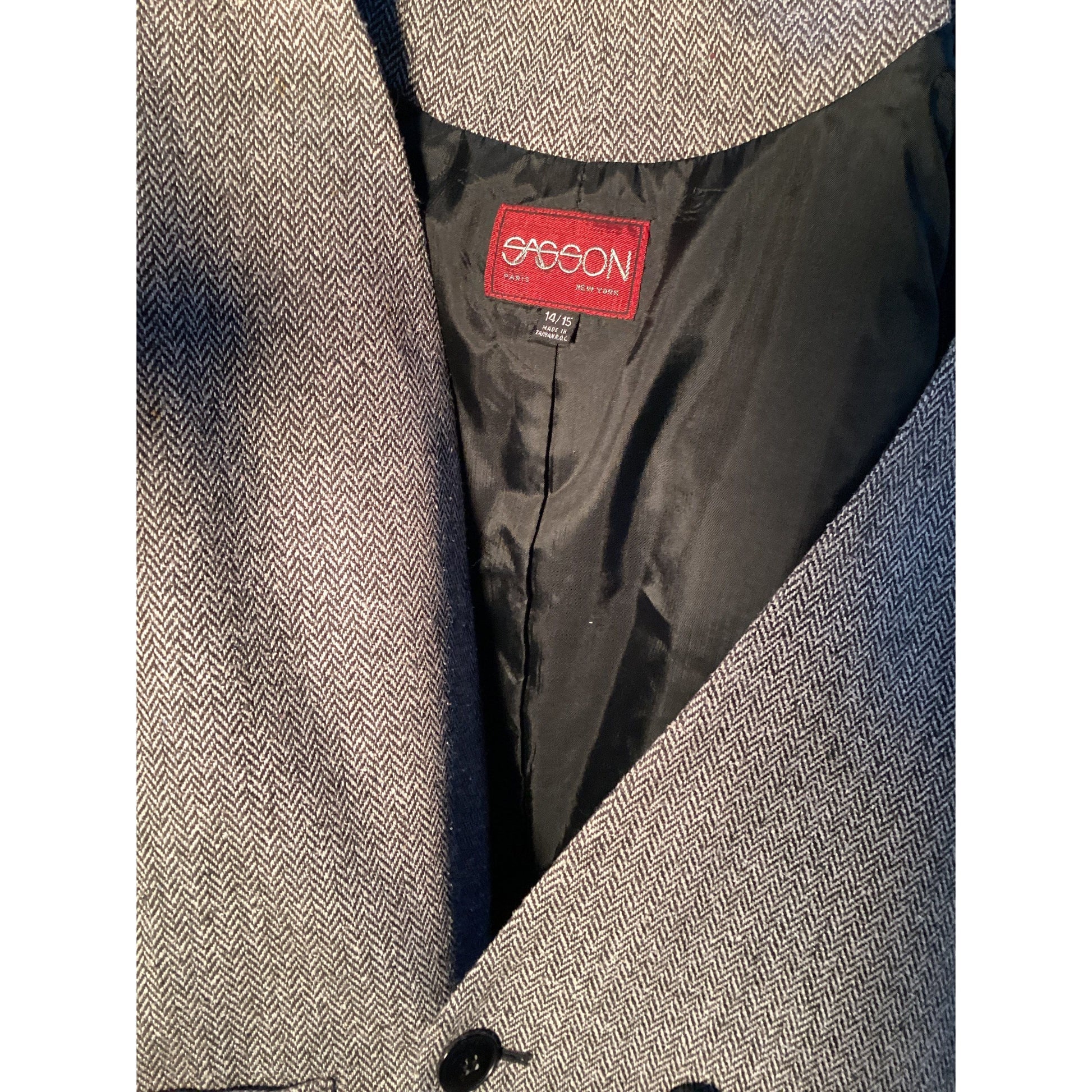 SASSON 2 BUTTON DOUBLE BREASTED BLAZER brown wool tweed size 14/15
