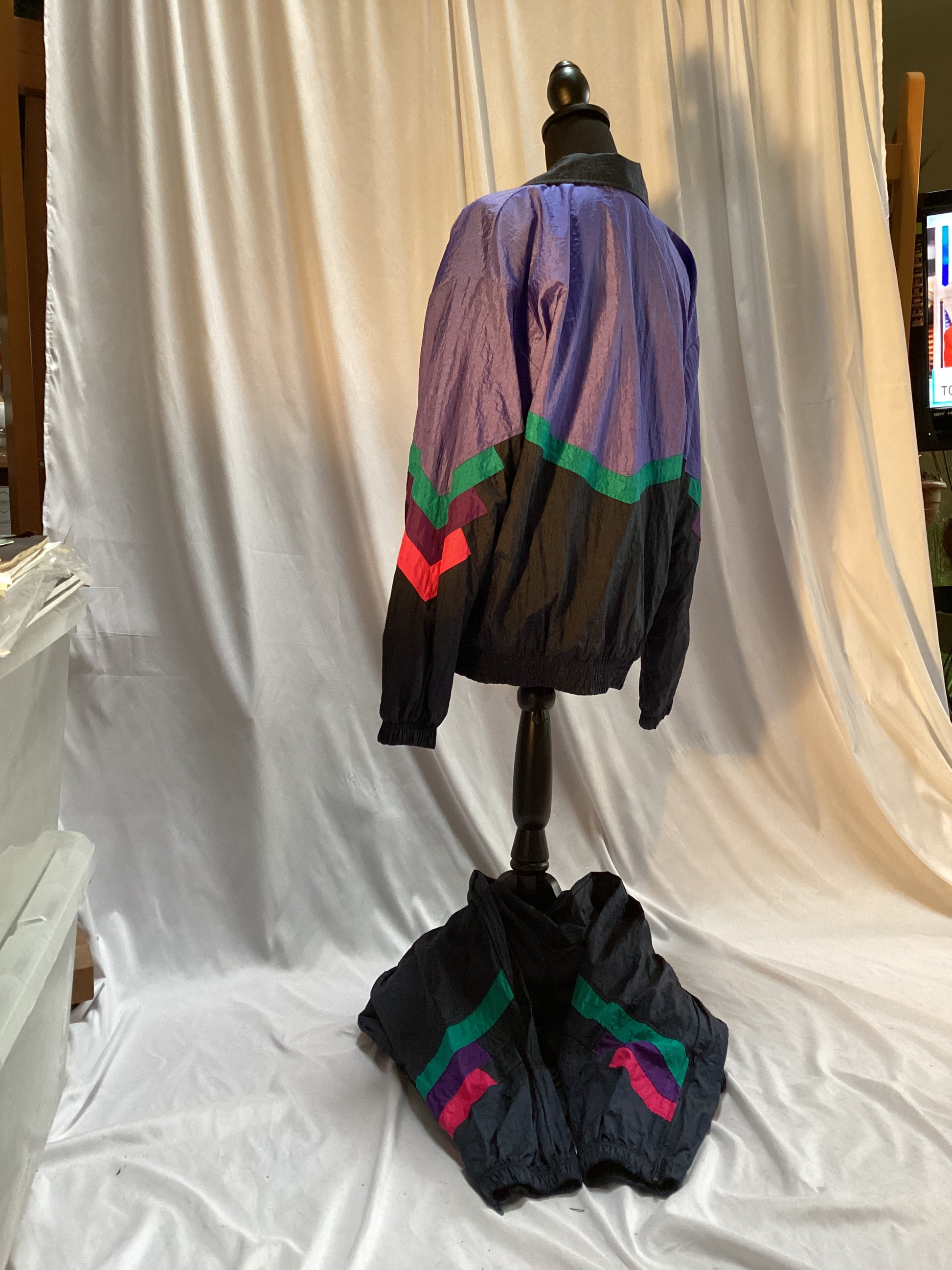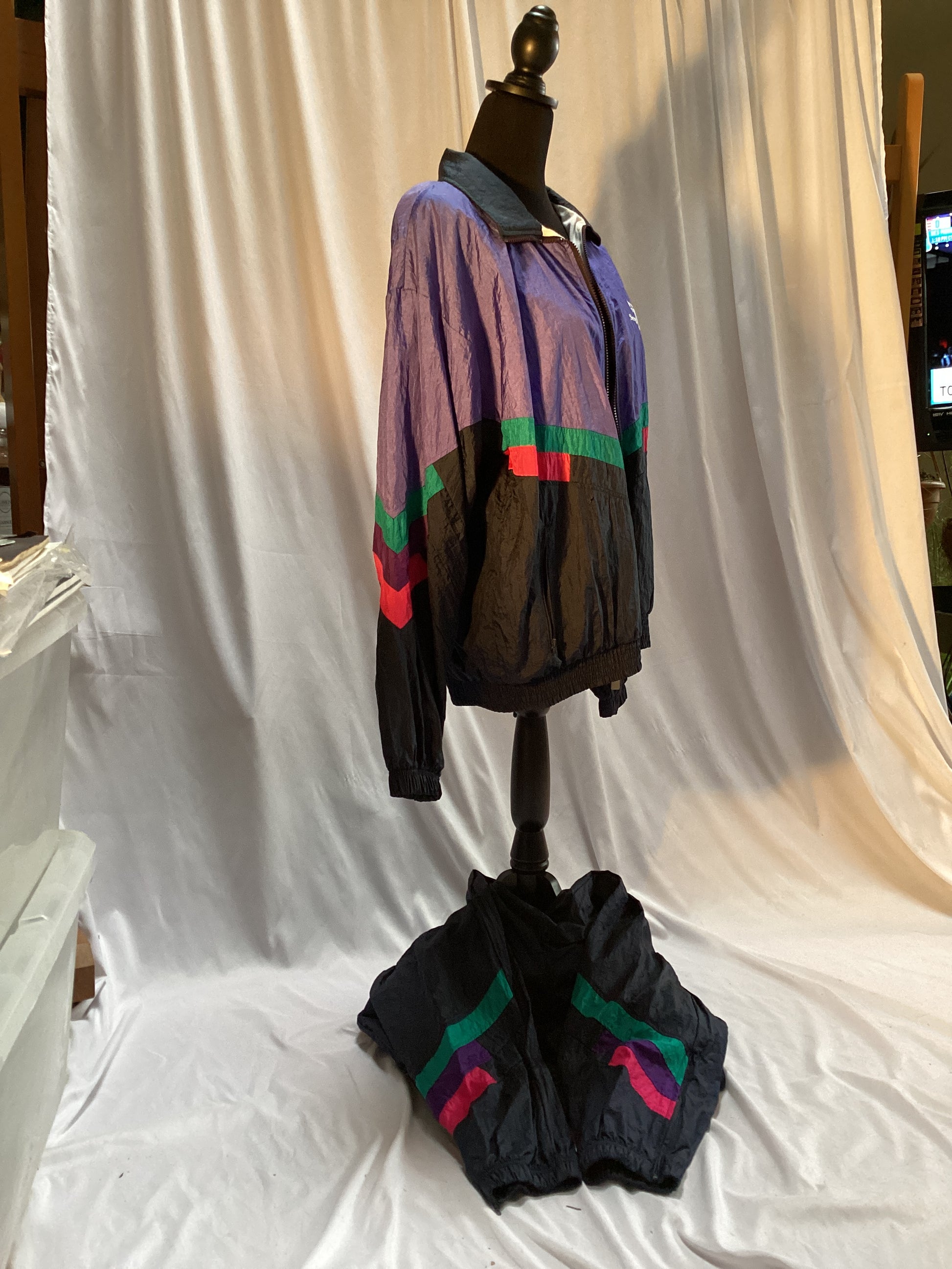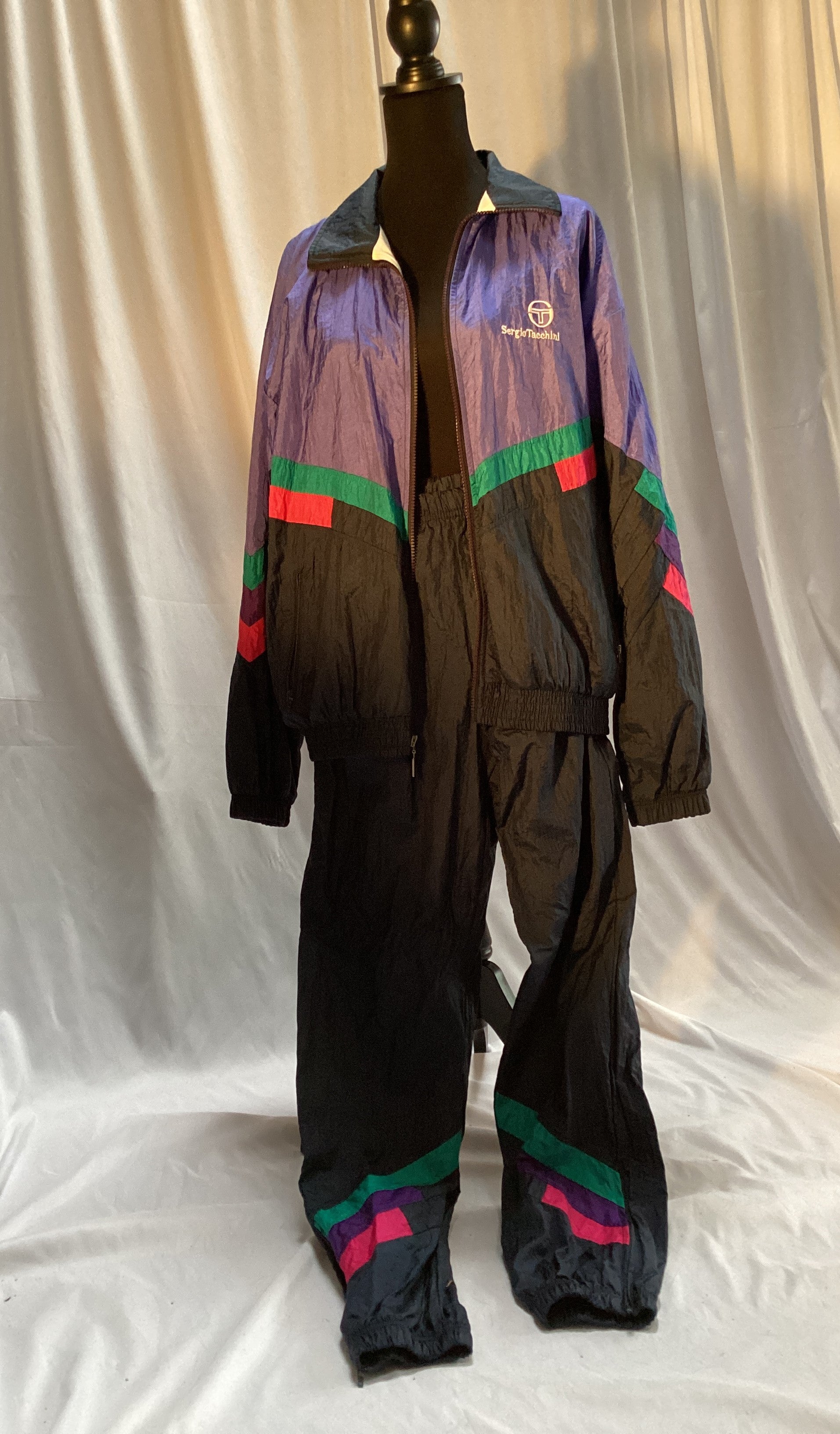 Men's Sergio Tacchini Warmup Suit Italy 2 pieces size 38 black with colored accents of red green and purple