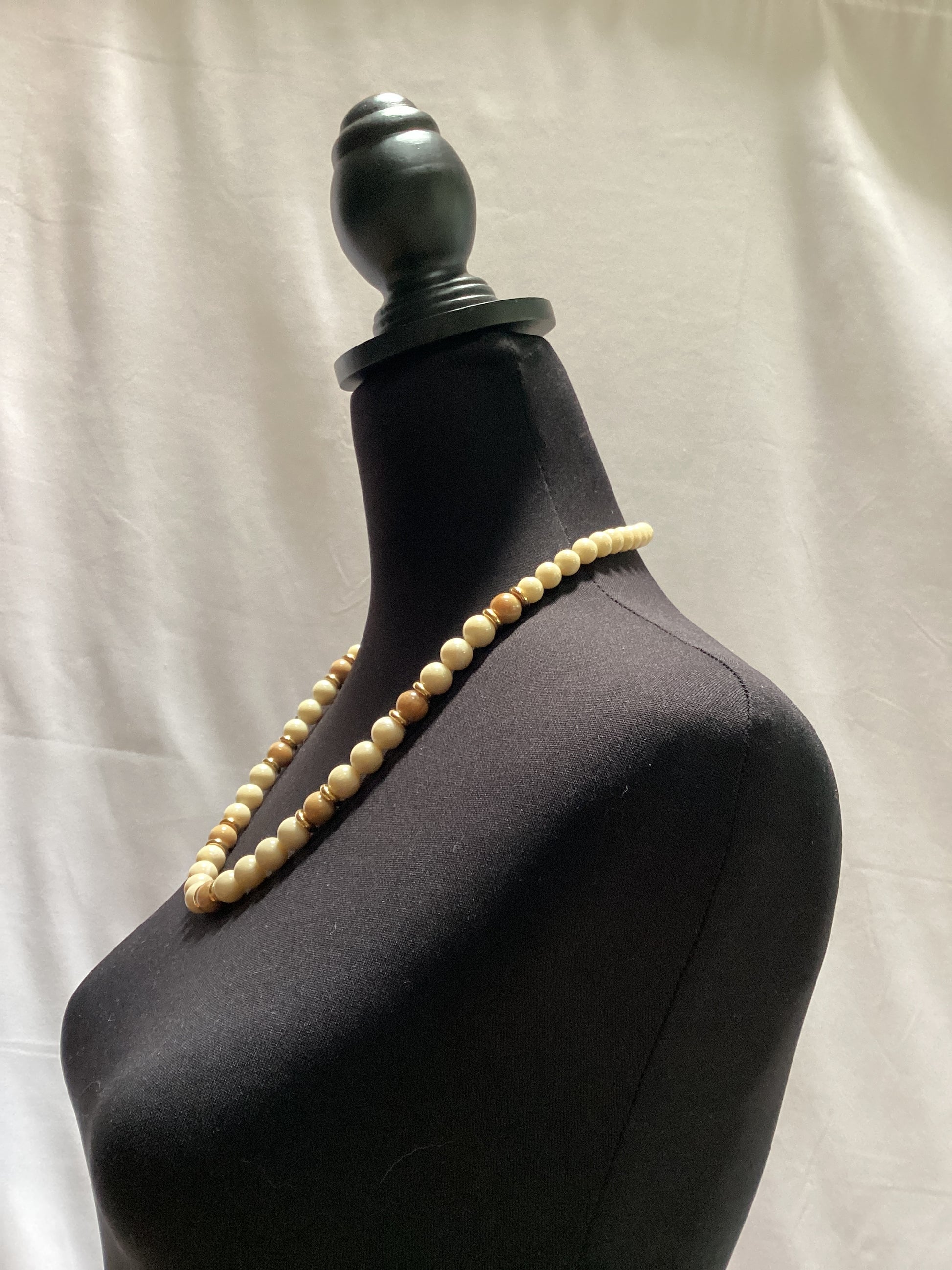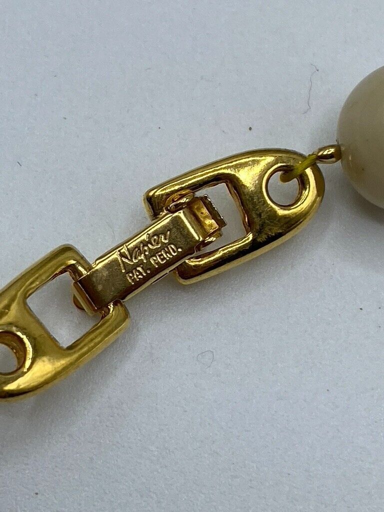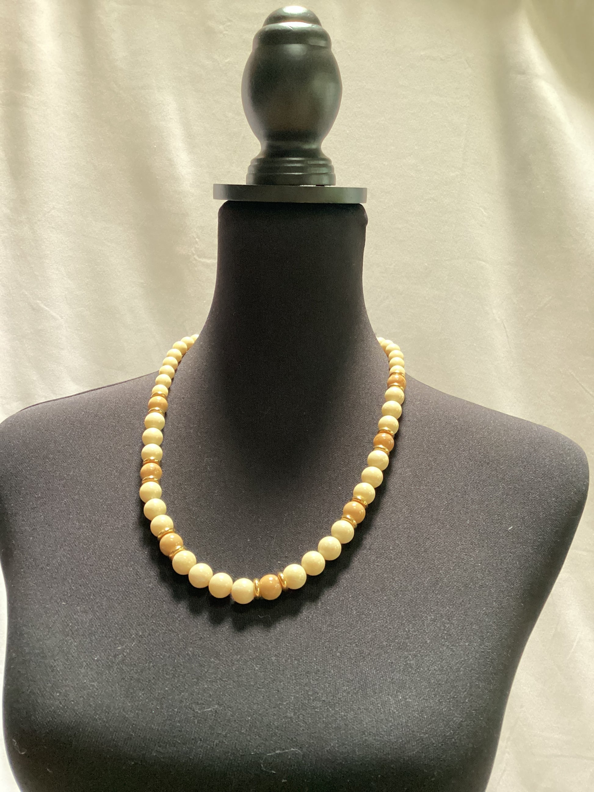 Introducing a stunning vintage find: the Marked Napier Choker featuring beautiful natural-colored Lucite beads embraced by elegant gold-tone spacers. Dating back to the 1970s, this necklace is a true testament to timeless style and craftsmanship.