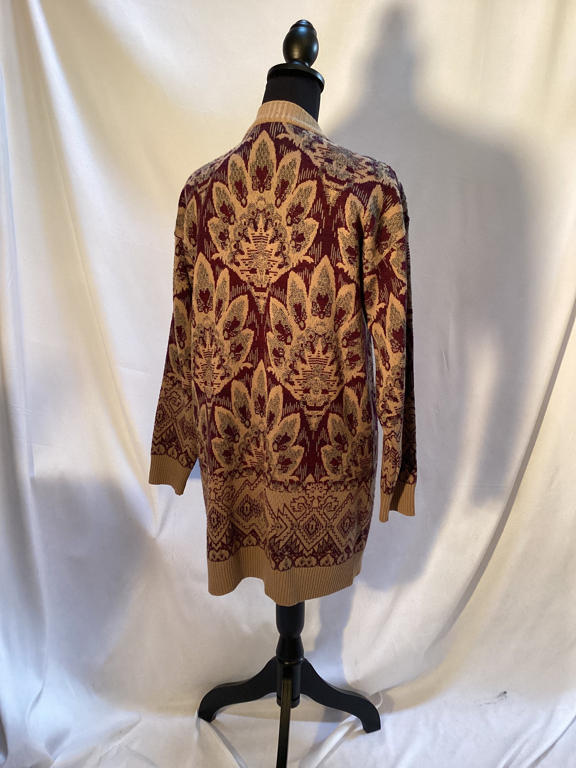 Merino wool, rayon and acrylic brown print sweater by Laura Johnson for foxcroft