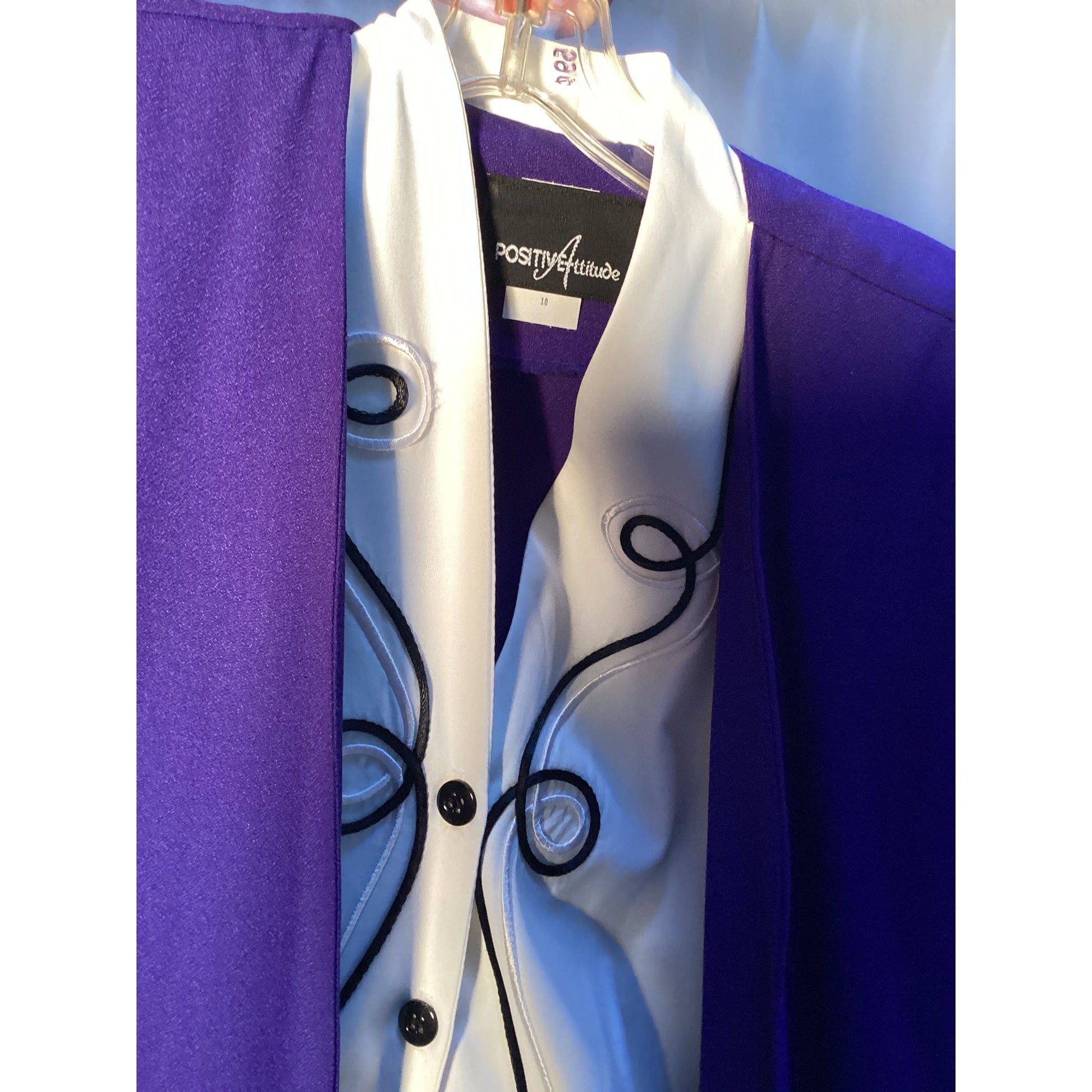 Own the moment. Own the style. Own the Women’s Black, Blue, and White 100% Polyester 2-Piece Pant Suit by Positive Attitude. Order yours today and redefine elegance.