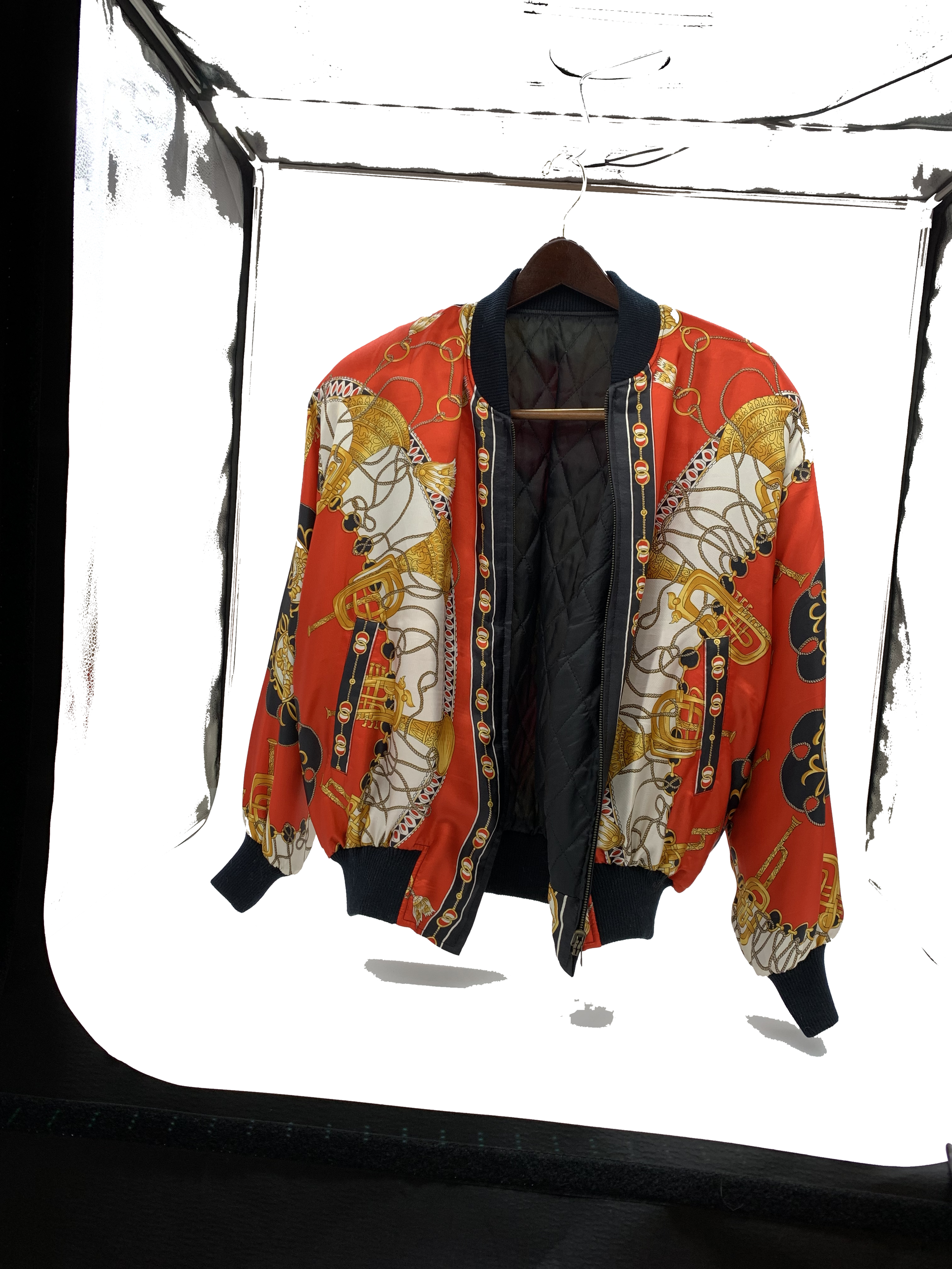 Versace-Inspired Design: Channel the spirit of Versace with this striking bomber jacket, featuring a colorful and expressive print that captures the essence of 80s extravagance.