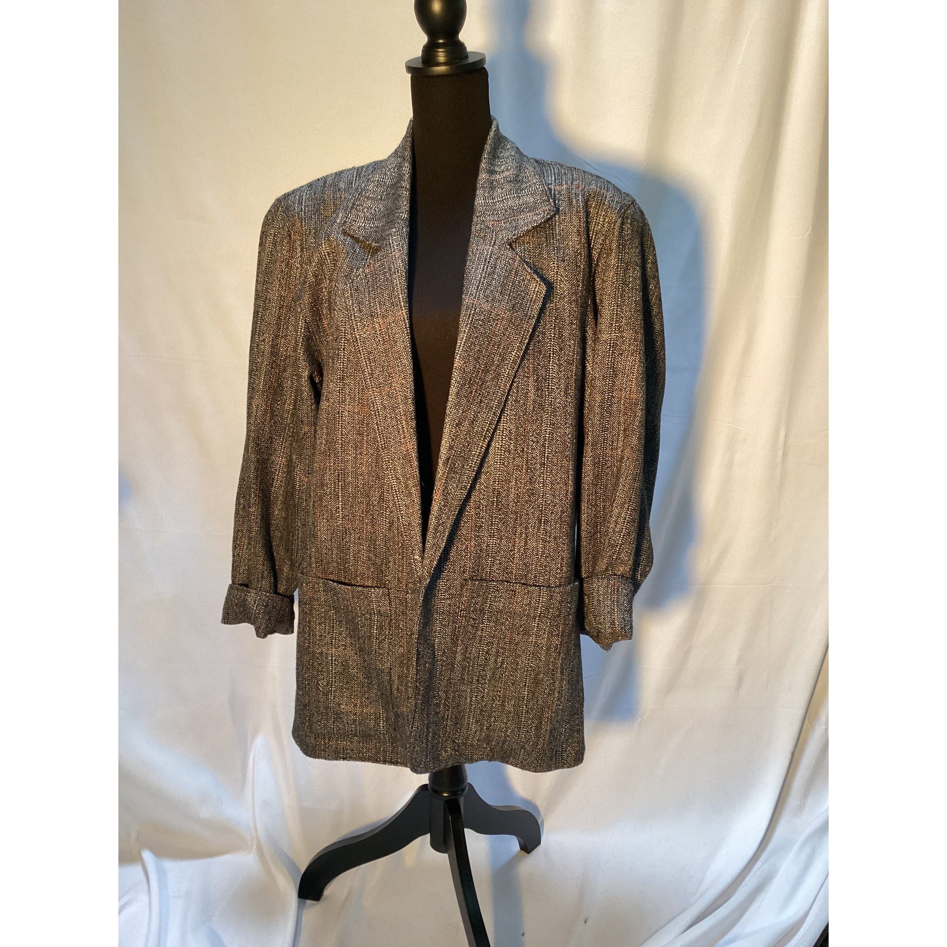 Oversized wool blazer, brown with stripes with pockets size 14/15